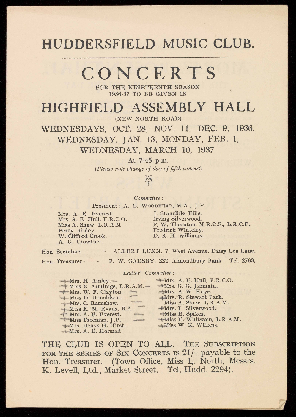 HUDDERSFIELD WOMEN'S CONSERVATIVE and UNIONIST