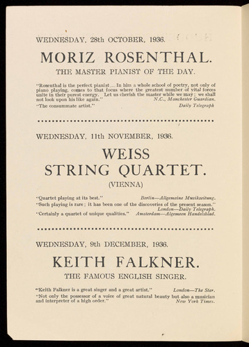 of entertainment for the music lover. Here is a selection