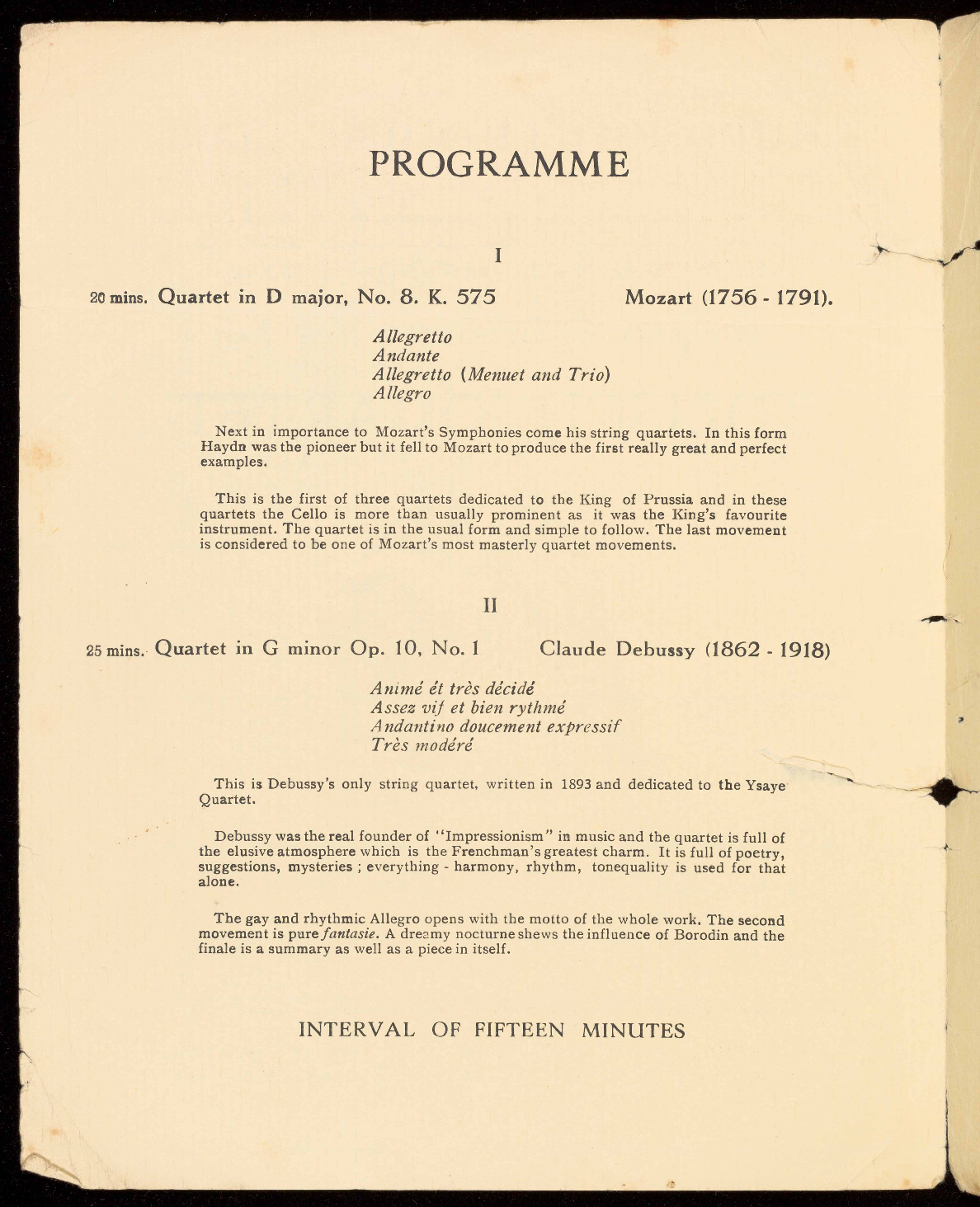 This is Debussy's only string quartet, written in 1893 and dedicated to the Ysaye