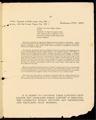35 mins. Quartet in B flat major, Op. 130