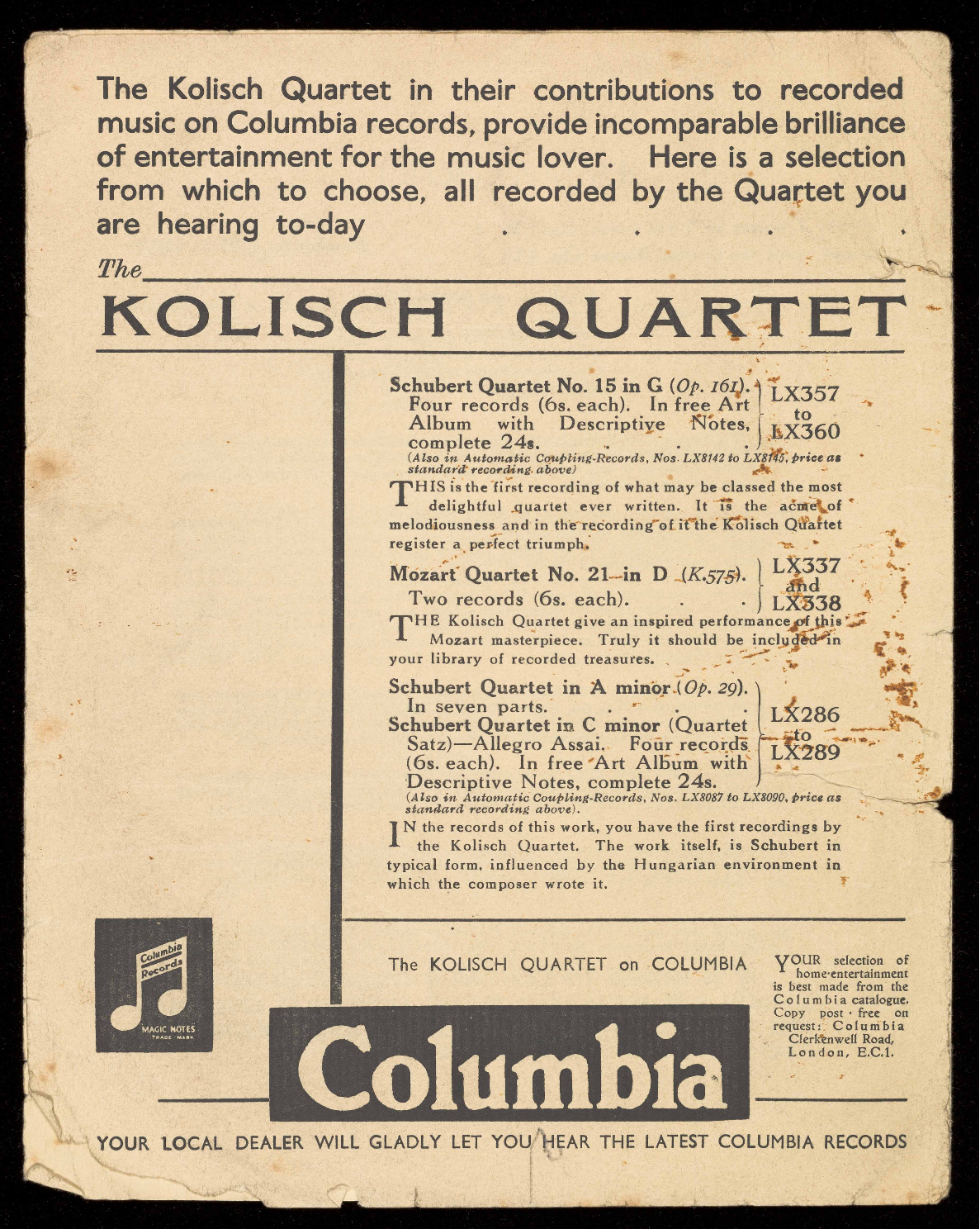The KOLISCH QUARTET on COLUMBIA