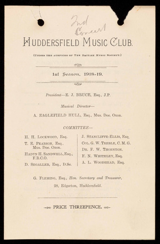 1 The Huddersfield Music Society, HMS 1, Page 1 |