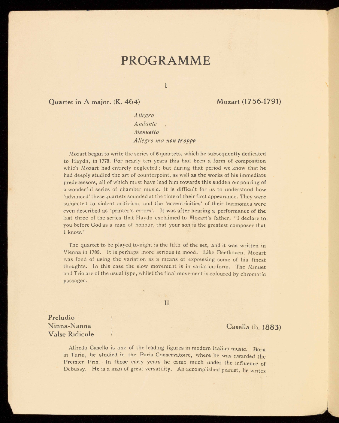 Quartet in B flat major, Op. 76 No. 4 (The Sunrise) Haydn (1732-1809)