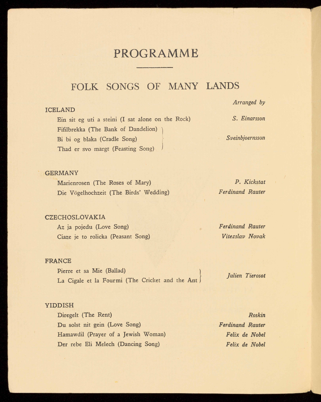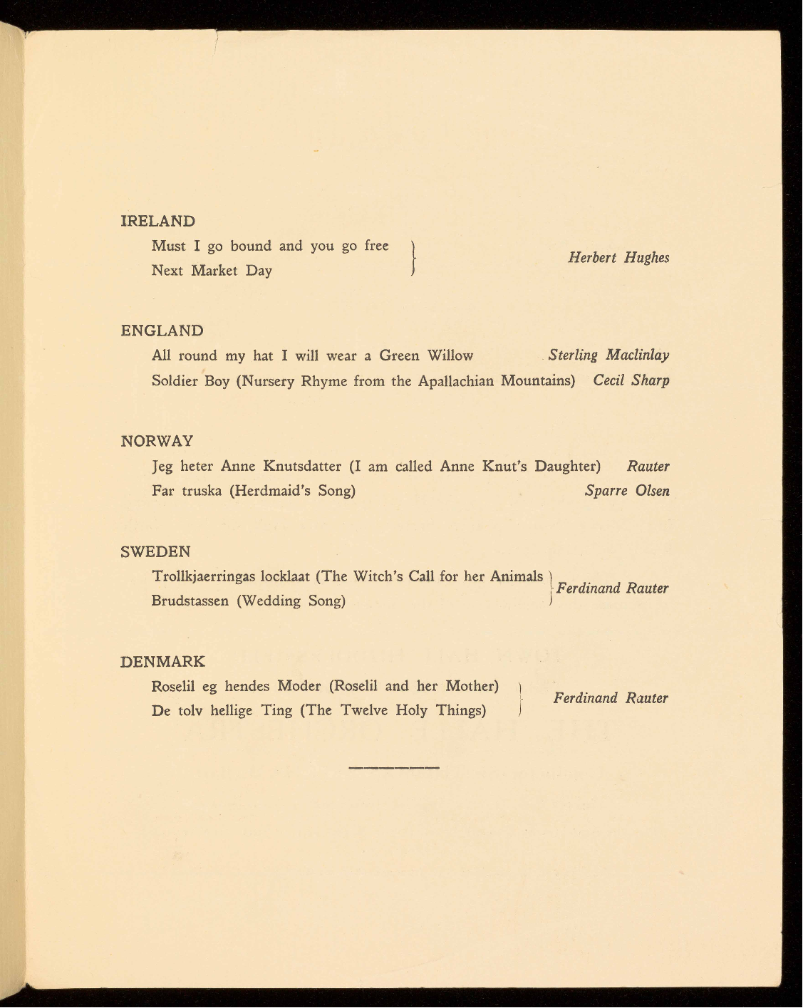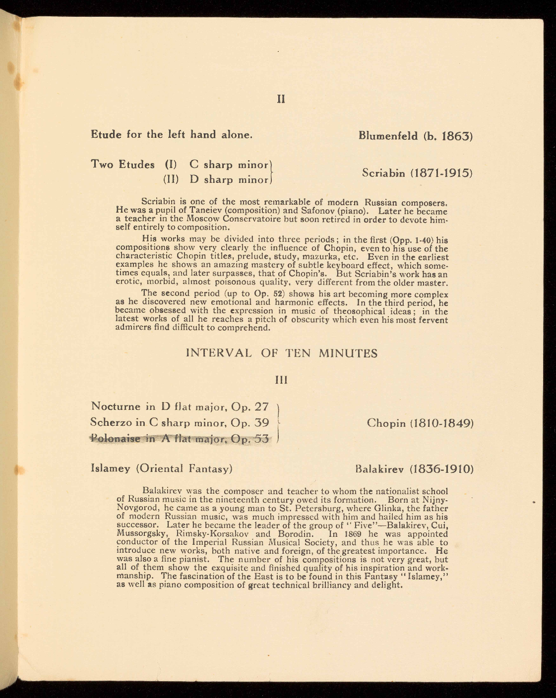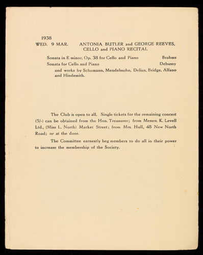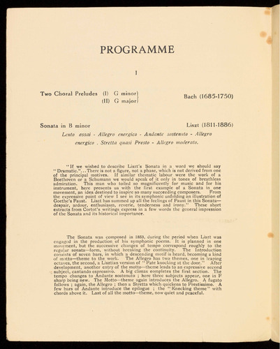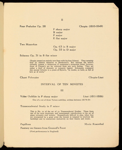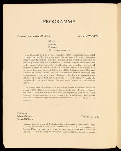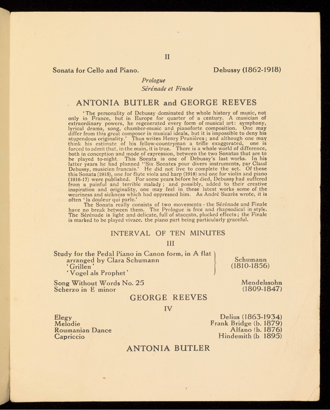 and works by Schumann, Mendelssohn, Delius, Bridge, Alfano