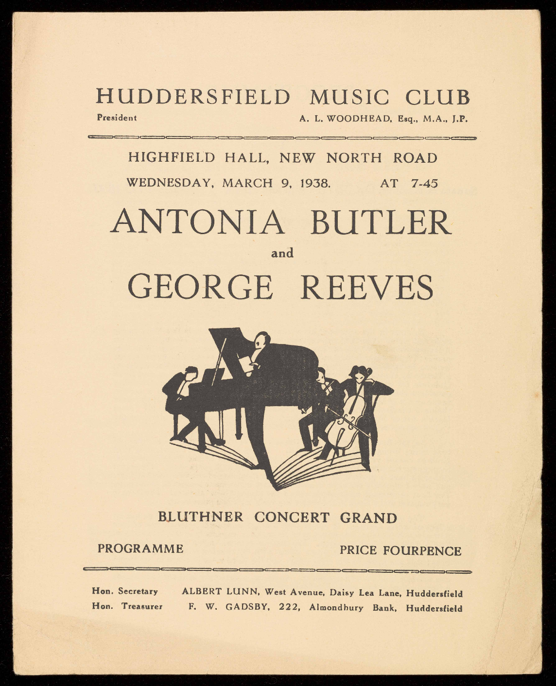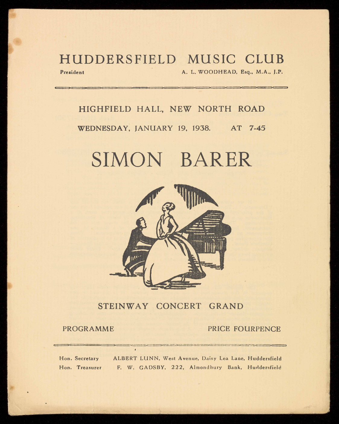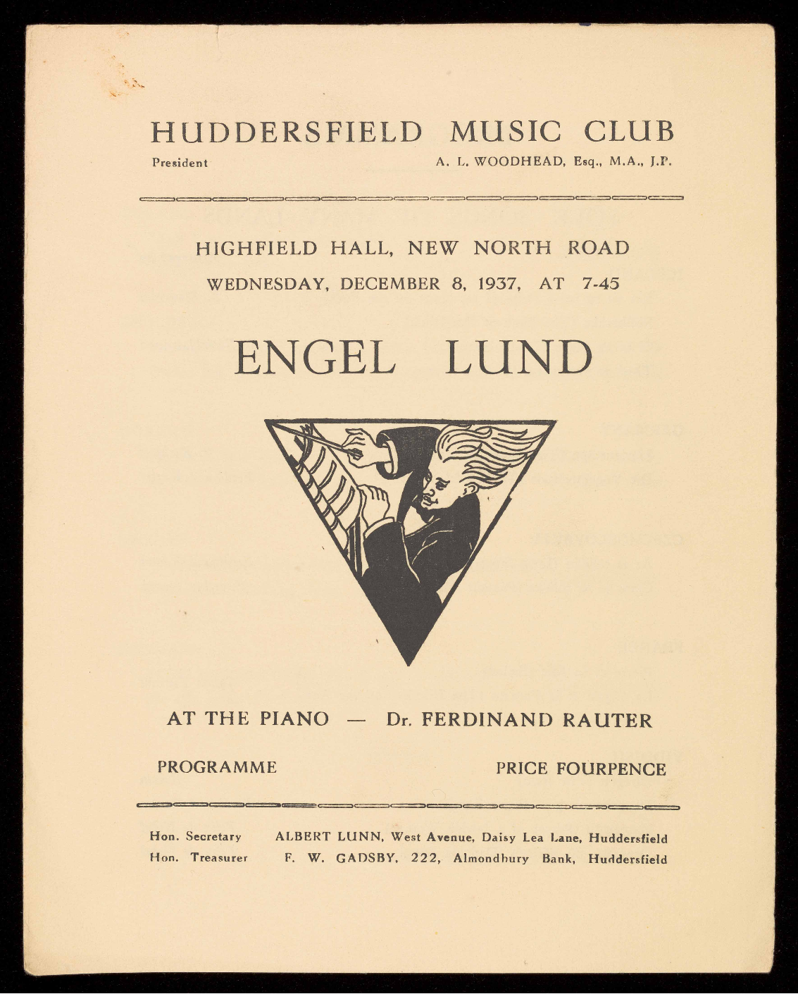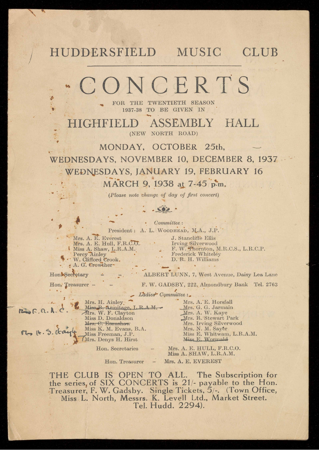 Treasurer, F. W. Gadsby. Single Tickets, 5/-. (Town Office,