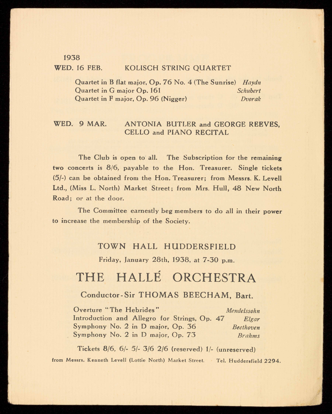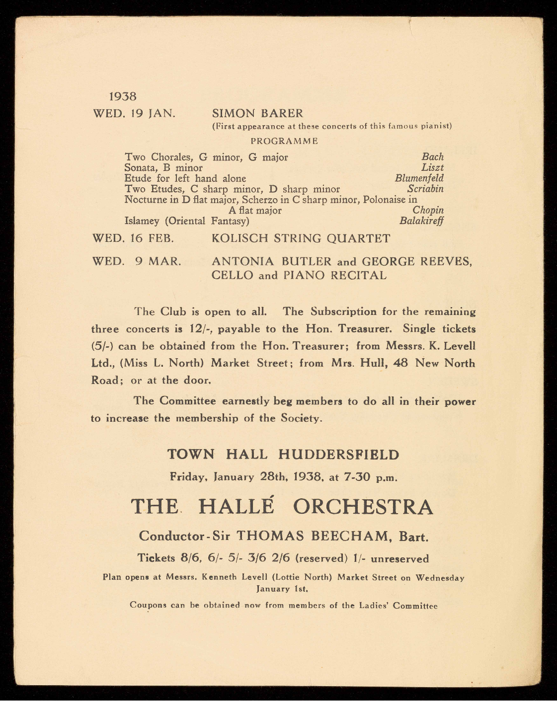 The Club is open to all. Single tickets for the remaining concert