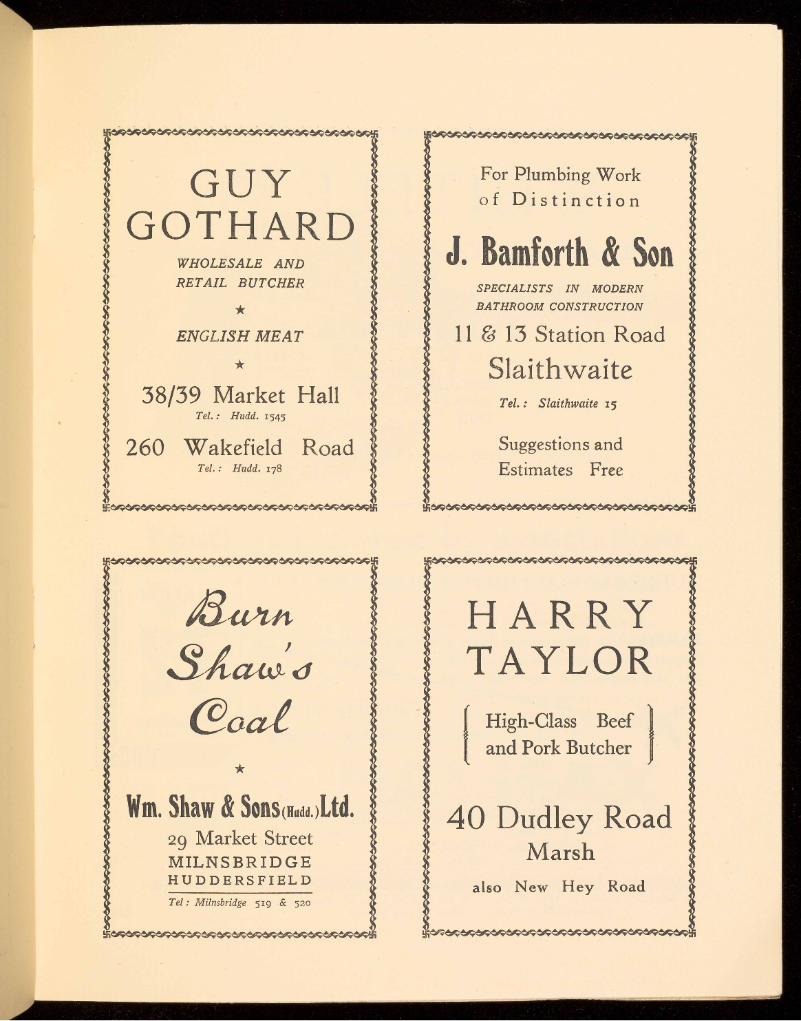 F. W. GADSBY. 222, Almondbury Bank, Huddersfield