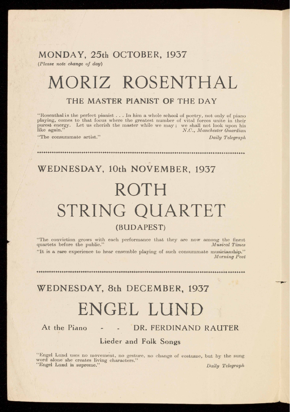 (Please note change of day of first concert)