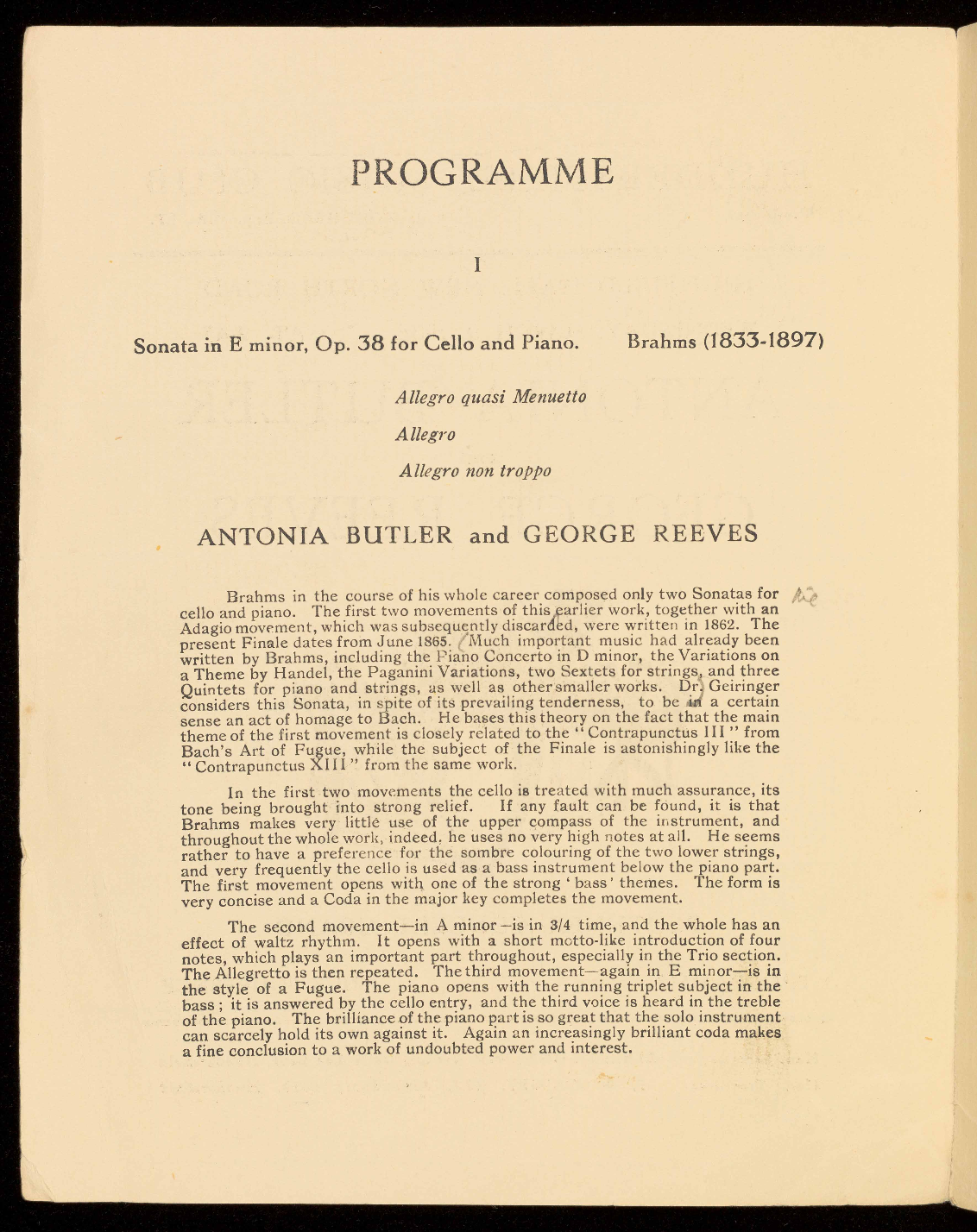 Sonata in E minor, Op. 38 for Cello and Piano