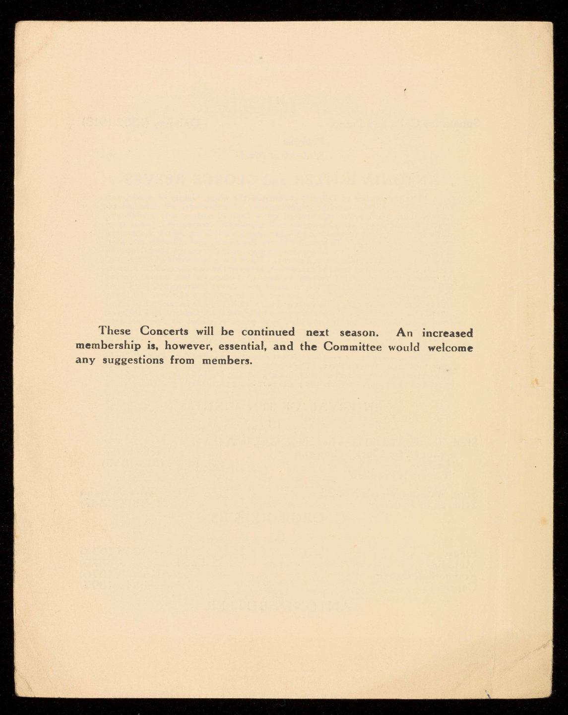 These Concerts will be continued next season. An increased