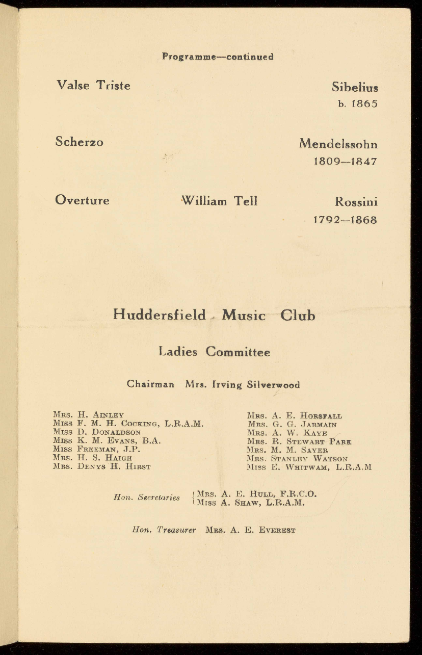 HUDDERSFIELD MUSIC SOCIETY