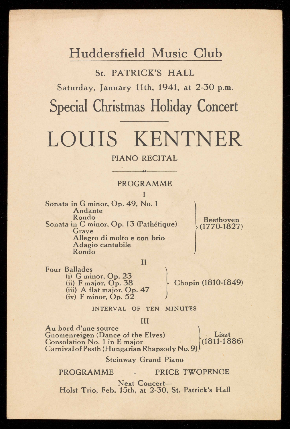 short series of afternoon concerts in War-time.