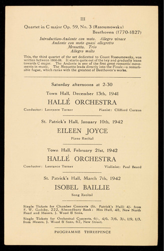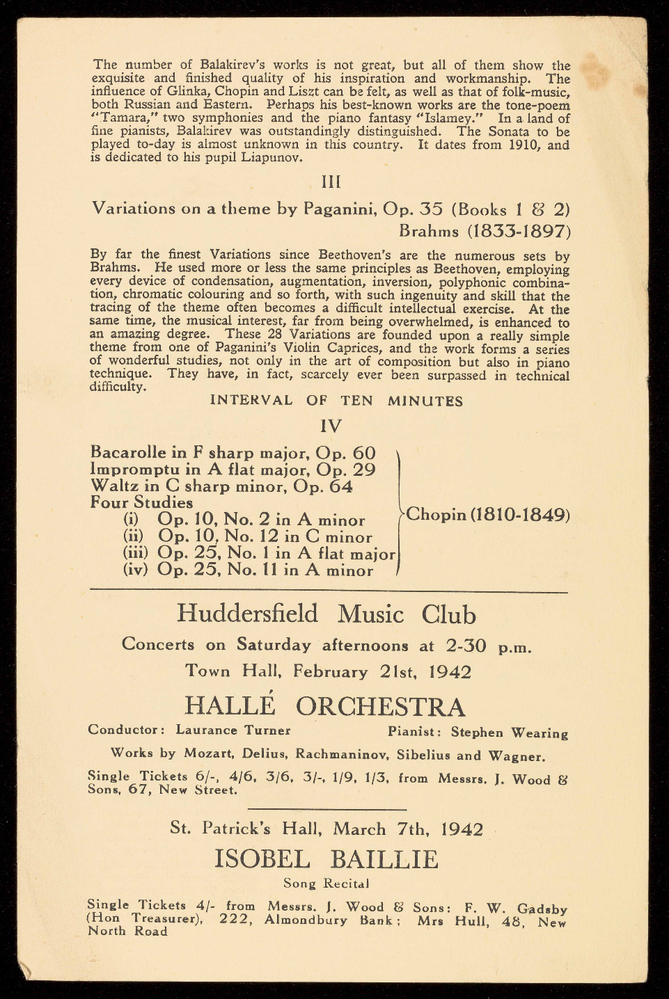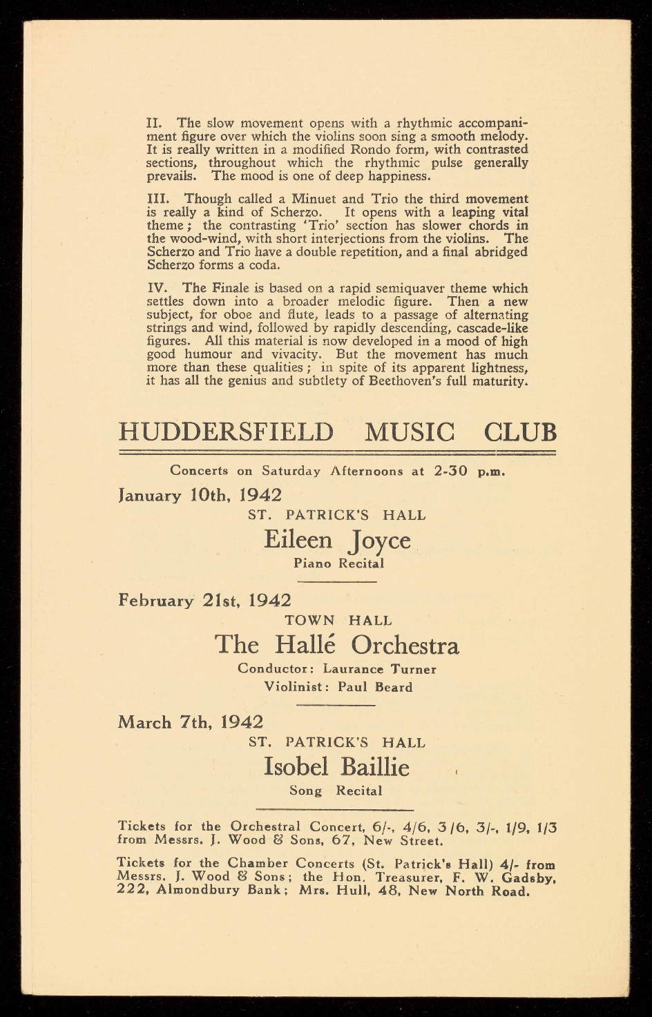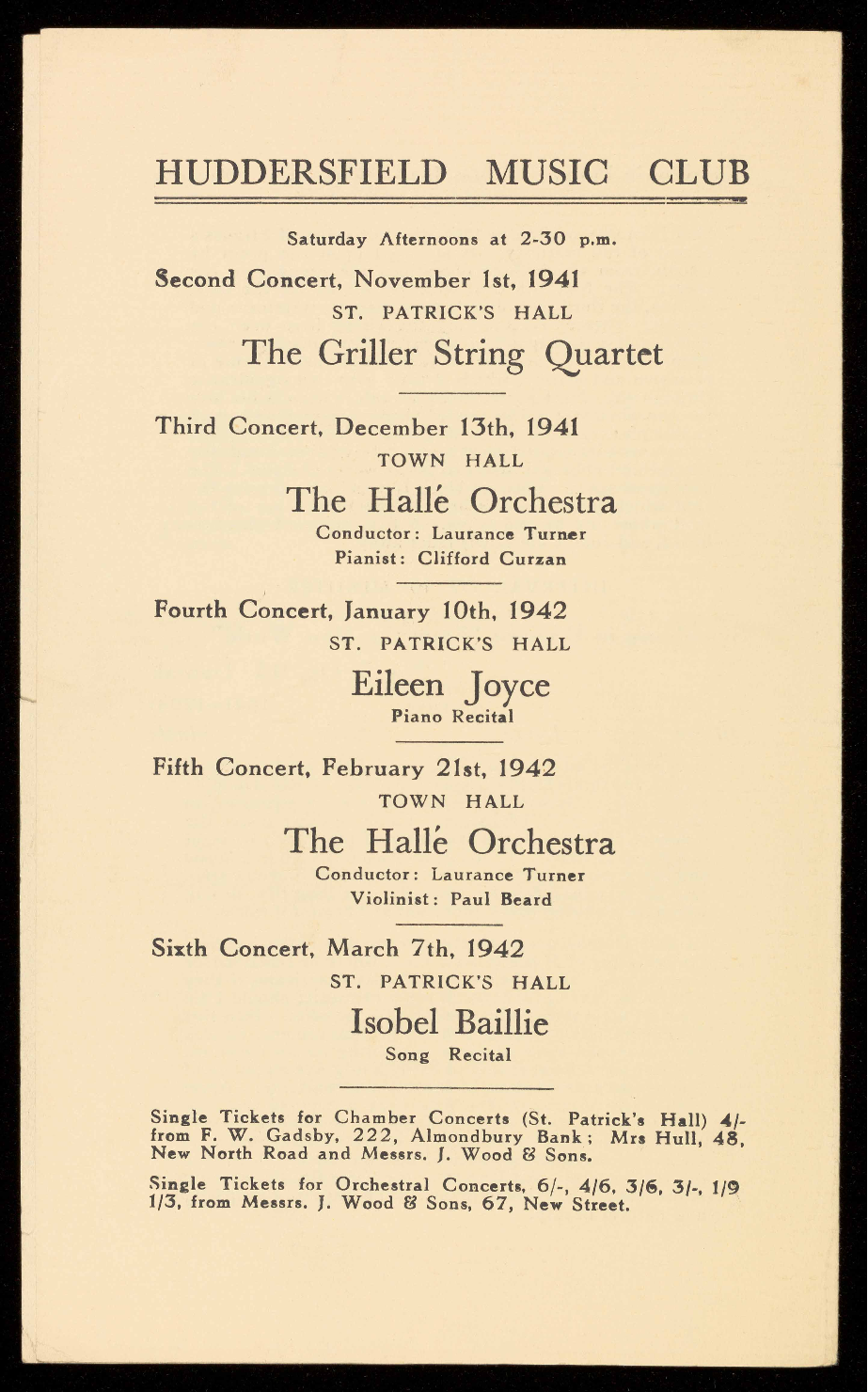 4/-, single tickets for Orchestral Concerts according to plan.