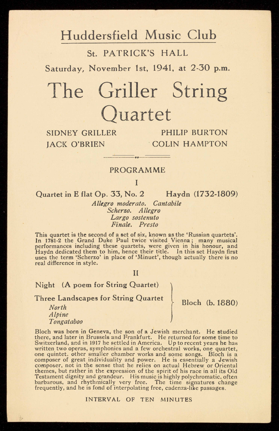 Afternoon Concerts in war-time. They also hope to