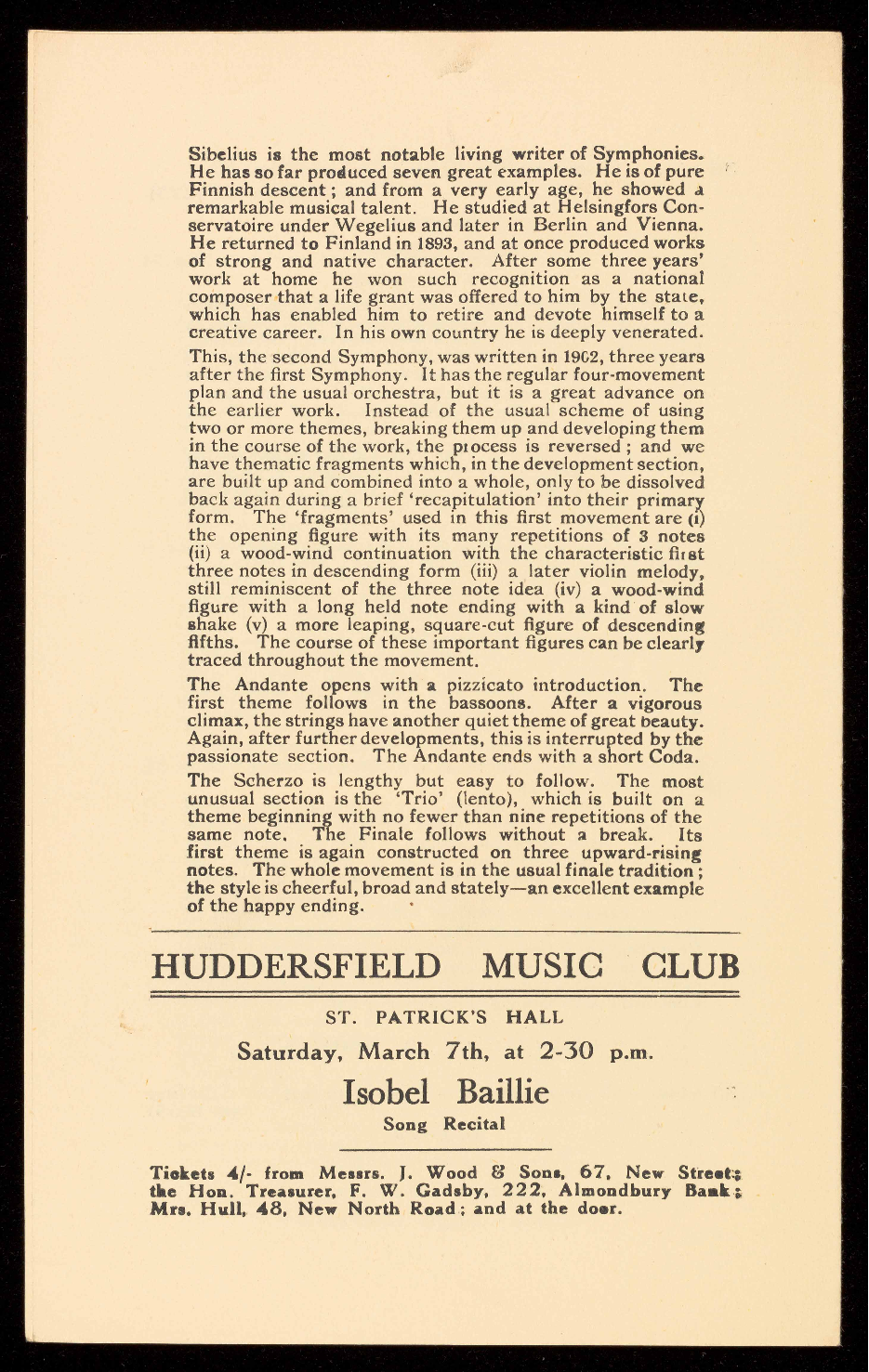 Tickets 4/- from Messrs. J. Wood & Sons, 67, New Street: