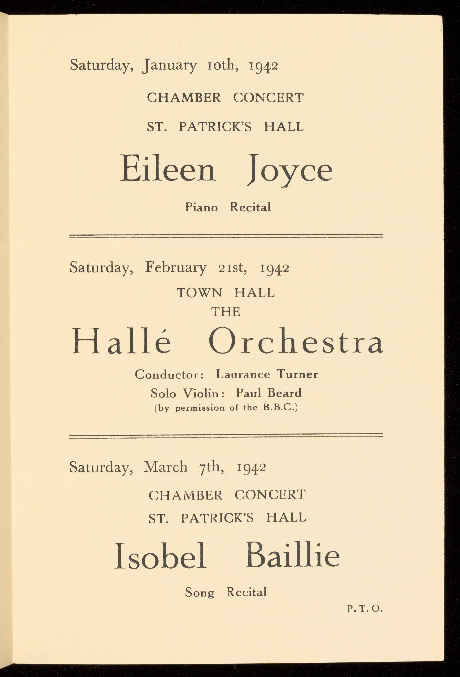 three Chamber Music Concerts and three Concerts by the