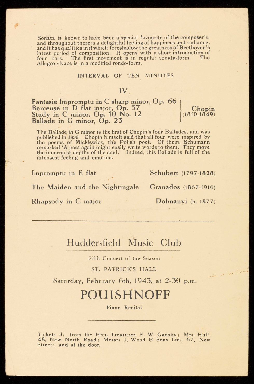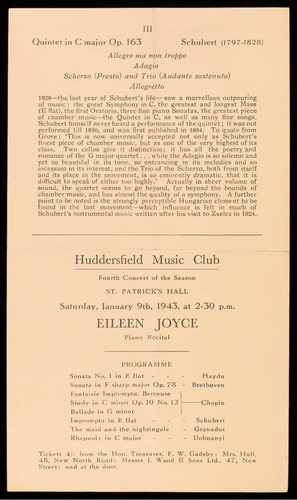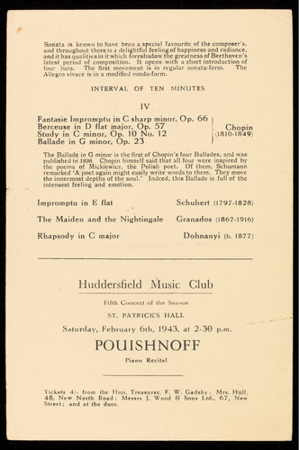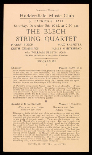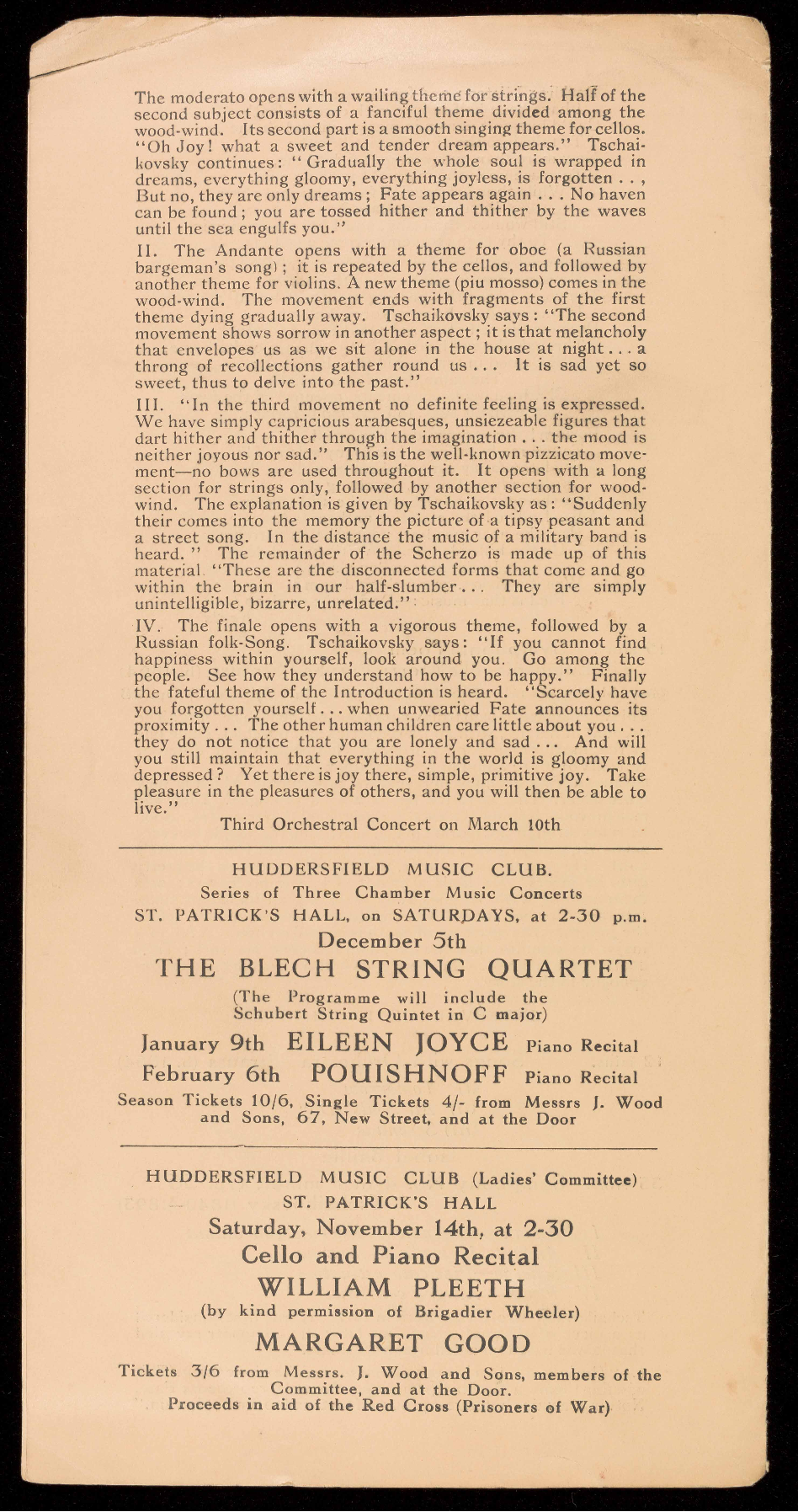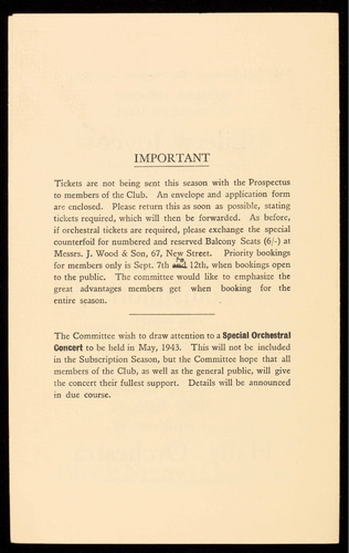 Hon. Treasurer. Single tickets for the Chamber Concerts