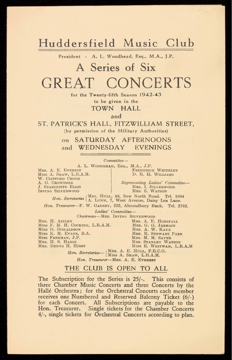 Hon. Treasurer-F. W. GADSBY, 222, Almondbury Bank. Tel. 2763.
