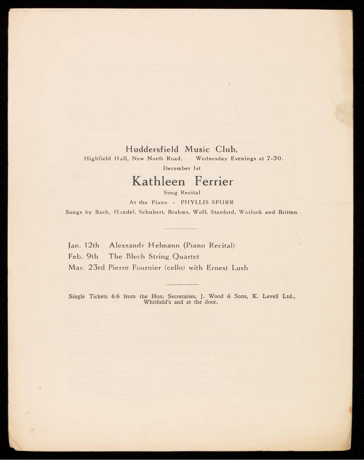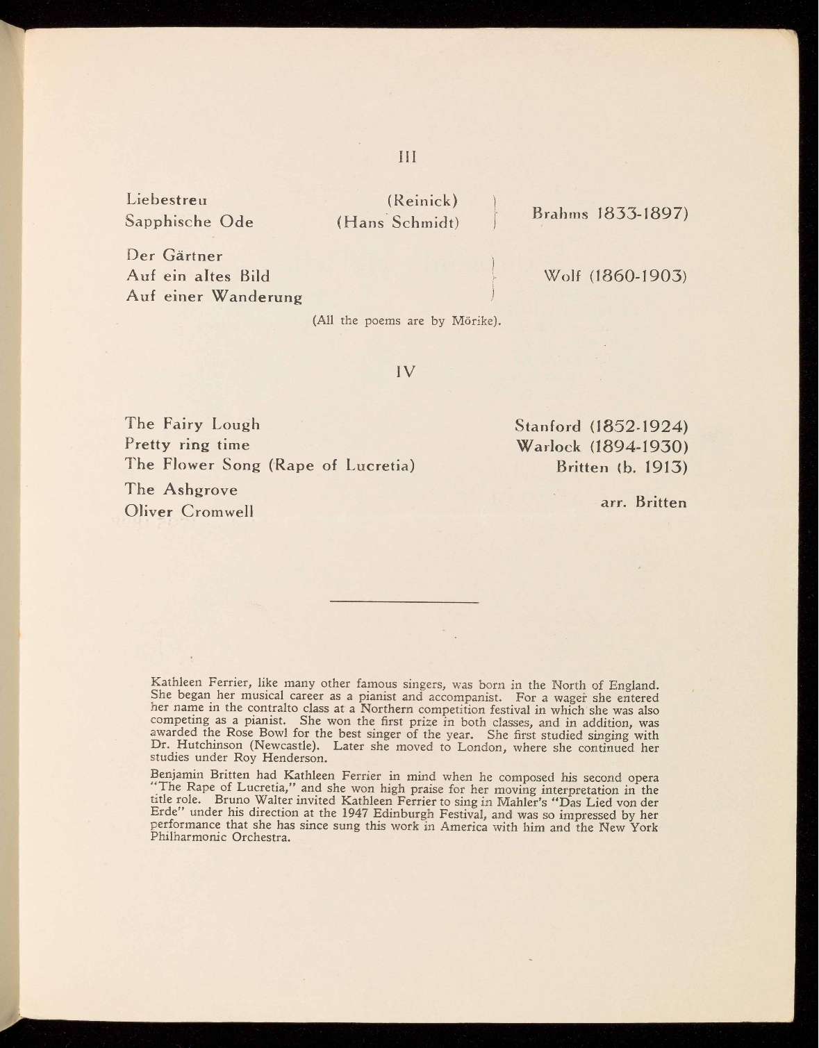 Wolf, Stanford, Warlock and Britten.