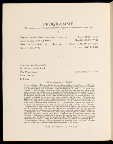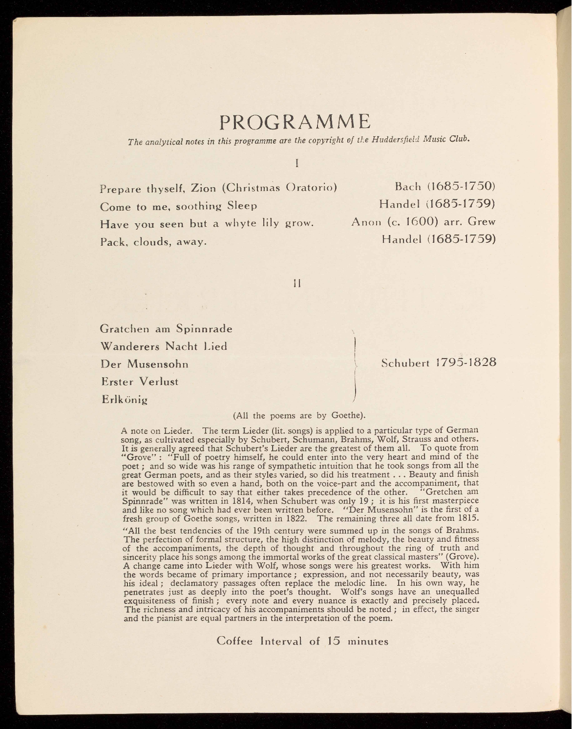 Songs by Bach, Handel, Schubert, Brahms,