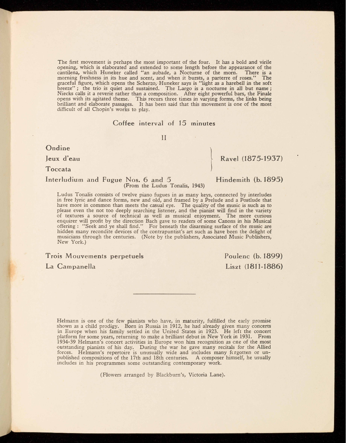 fâché avec la lune." The short first movement is declamatory in style. The second