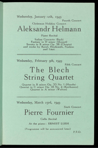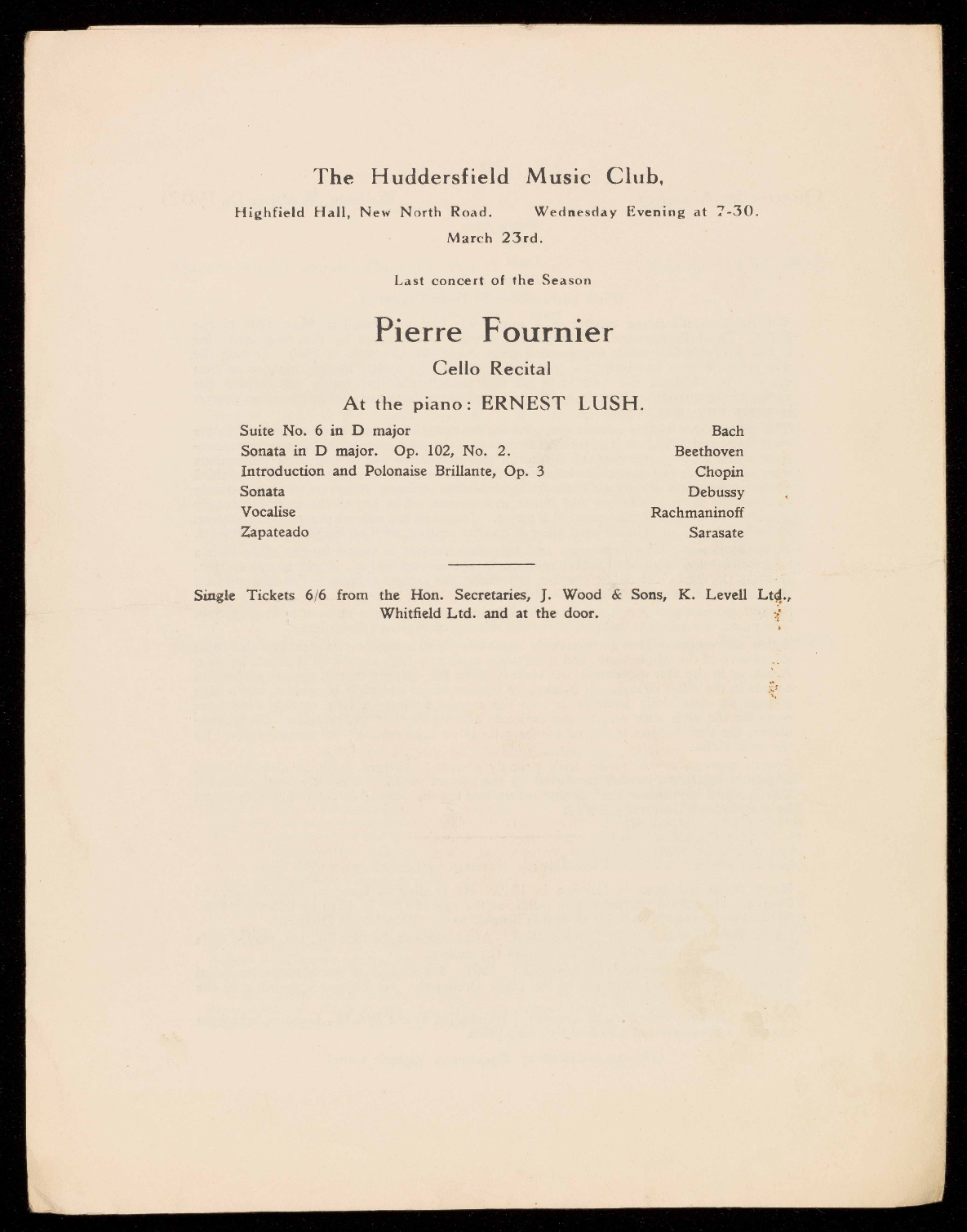 At the piano: ERNEST LUSH.