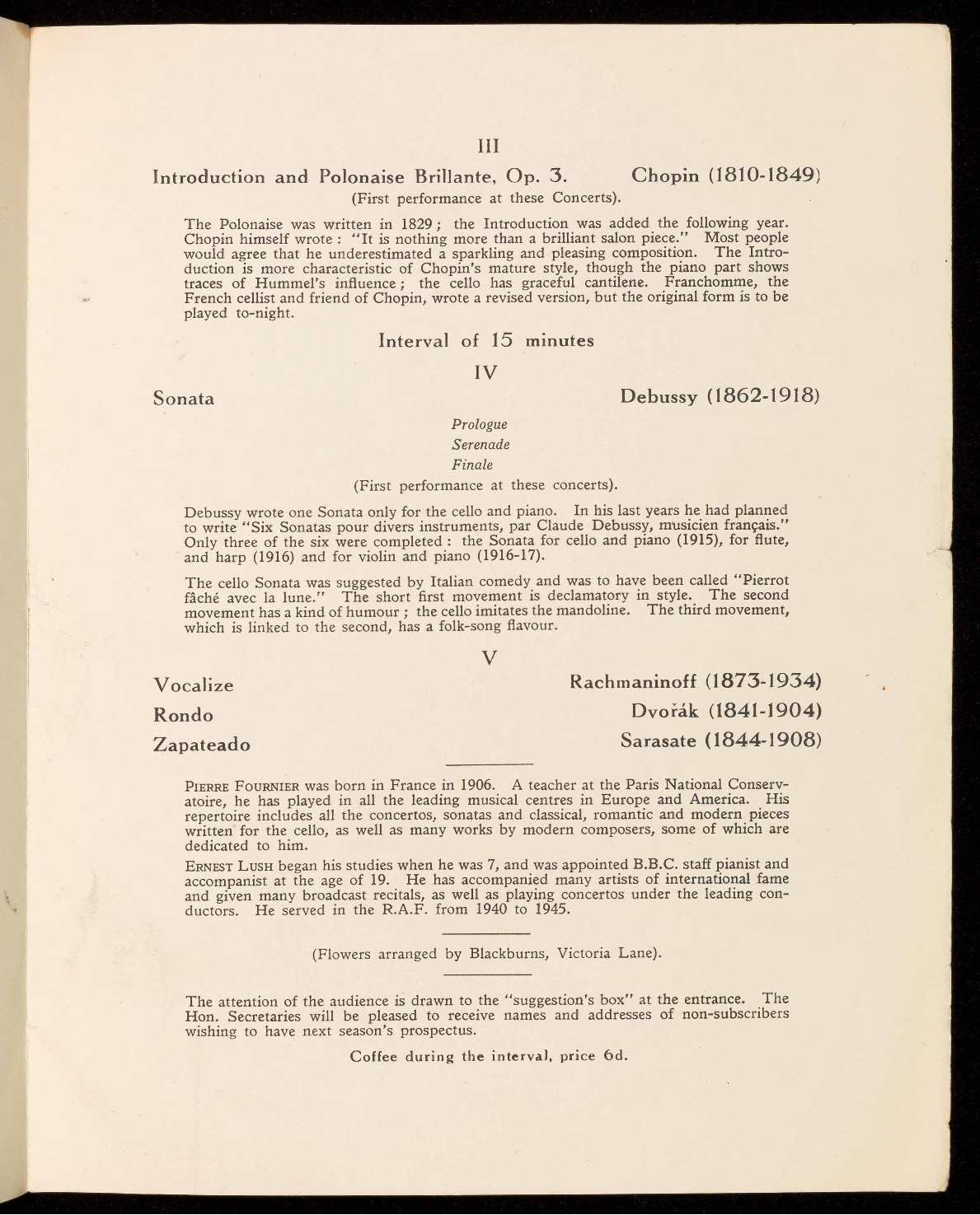 The cello Sonata was suggested by Italian comedy and was to have been called "Pierrot