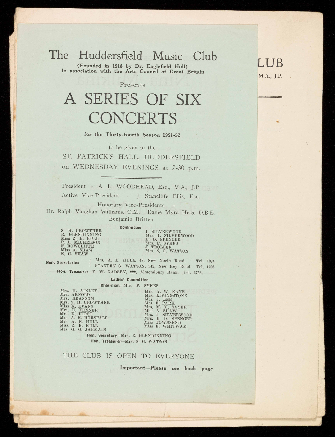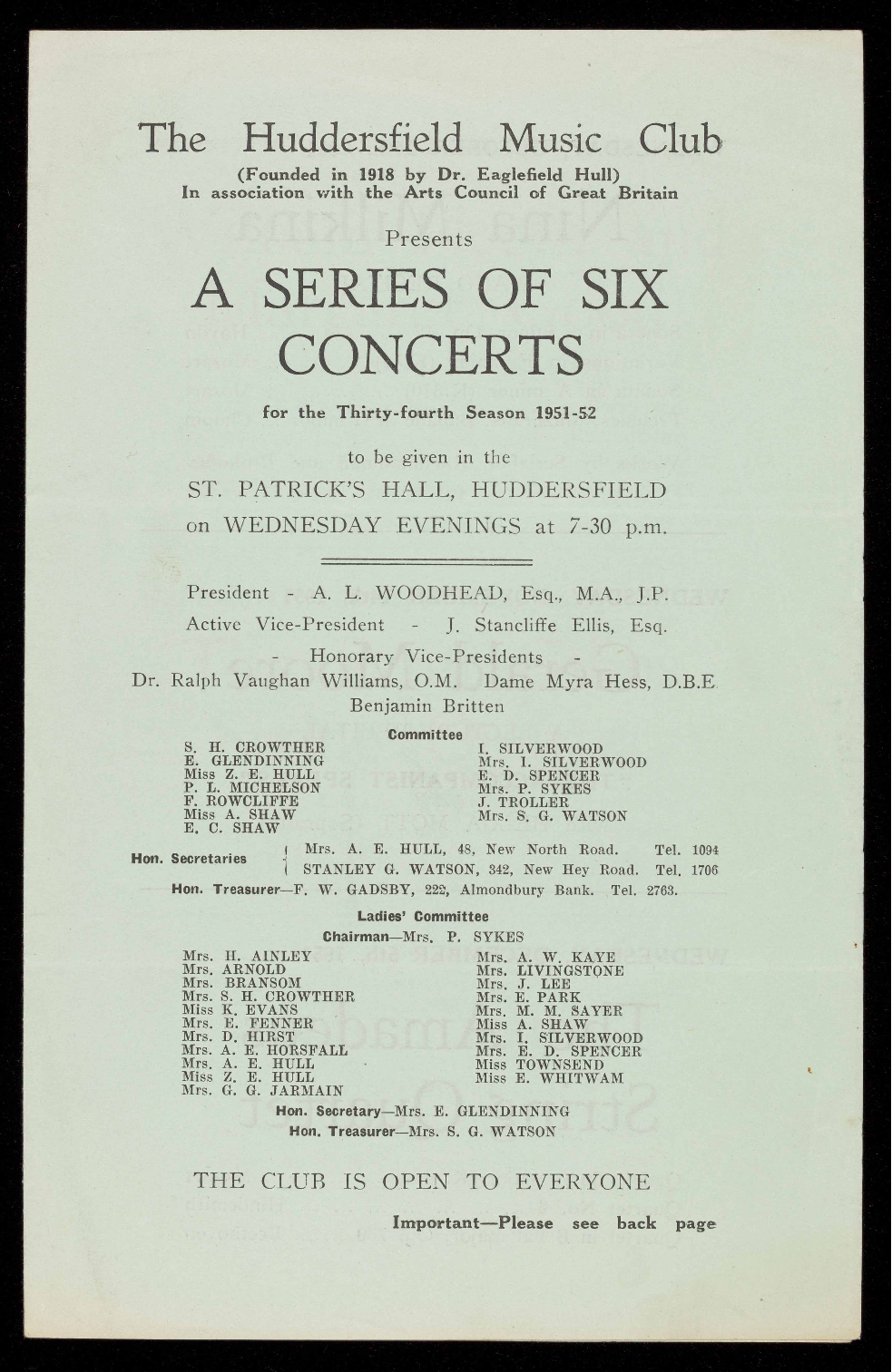Hon. Treasurer-F. W. GADSBY, 222, Almondbury Bank. Tel. 2763.