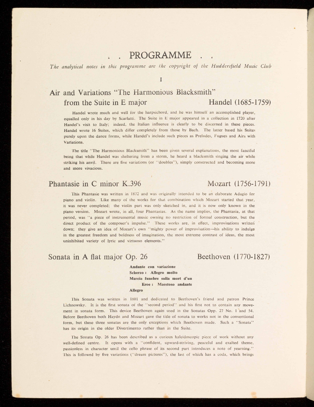 The Sonata Op. 26 has been described as a curious kaleidoscopic piece of work without any