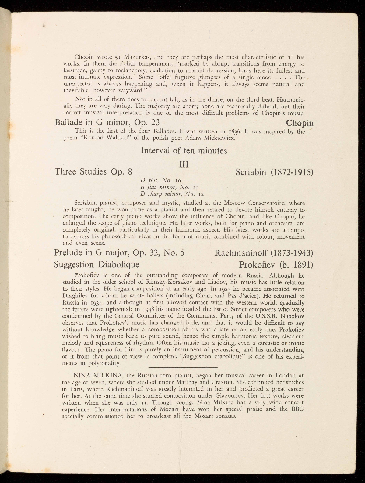 Details of next Season's Concerts will be sent on applica-