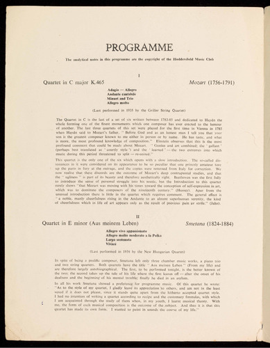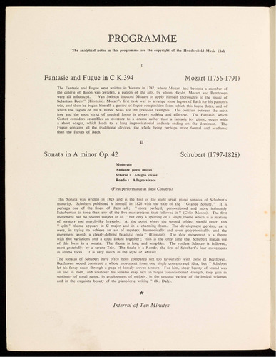 The pieces to be performed tonight are his last complete works. The first, Dedication," is built