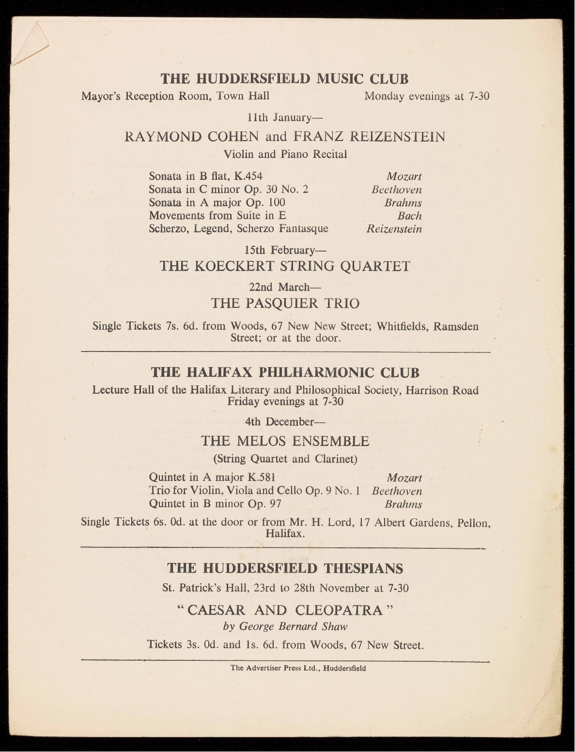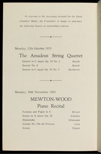 Arrangements for next season's Concerts are not yet completed. The Hon.