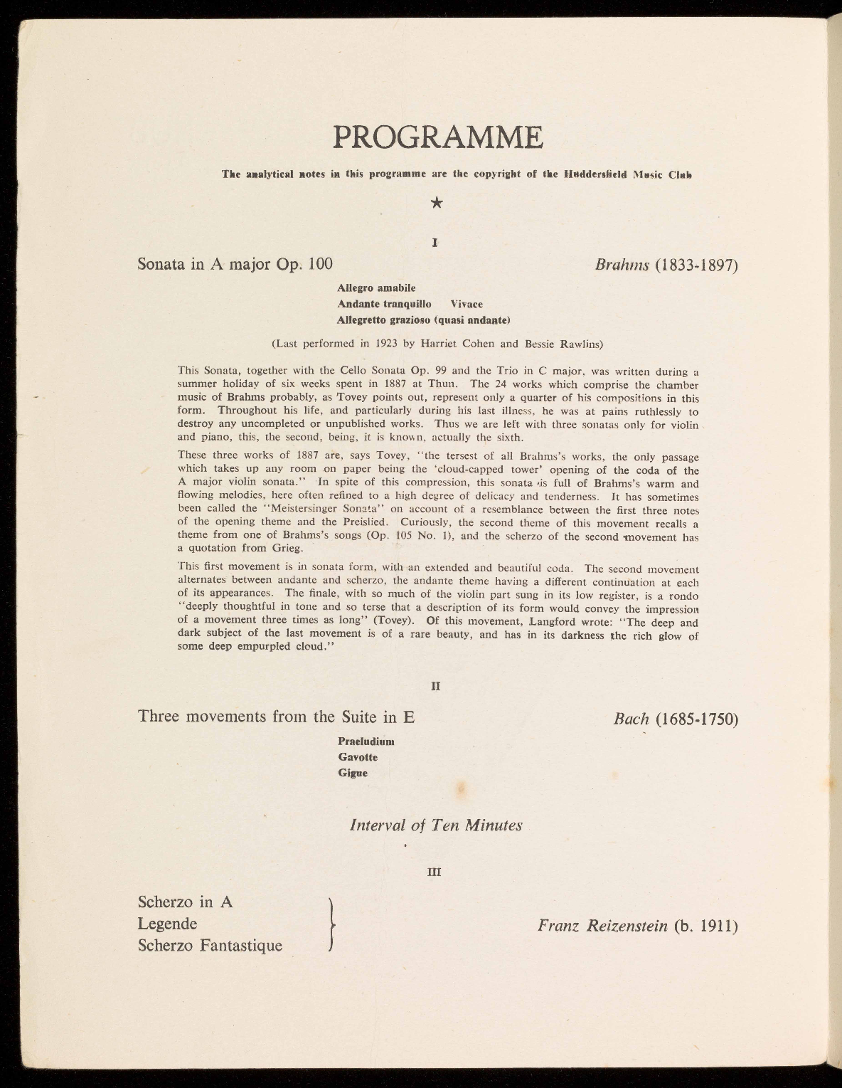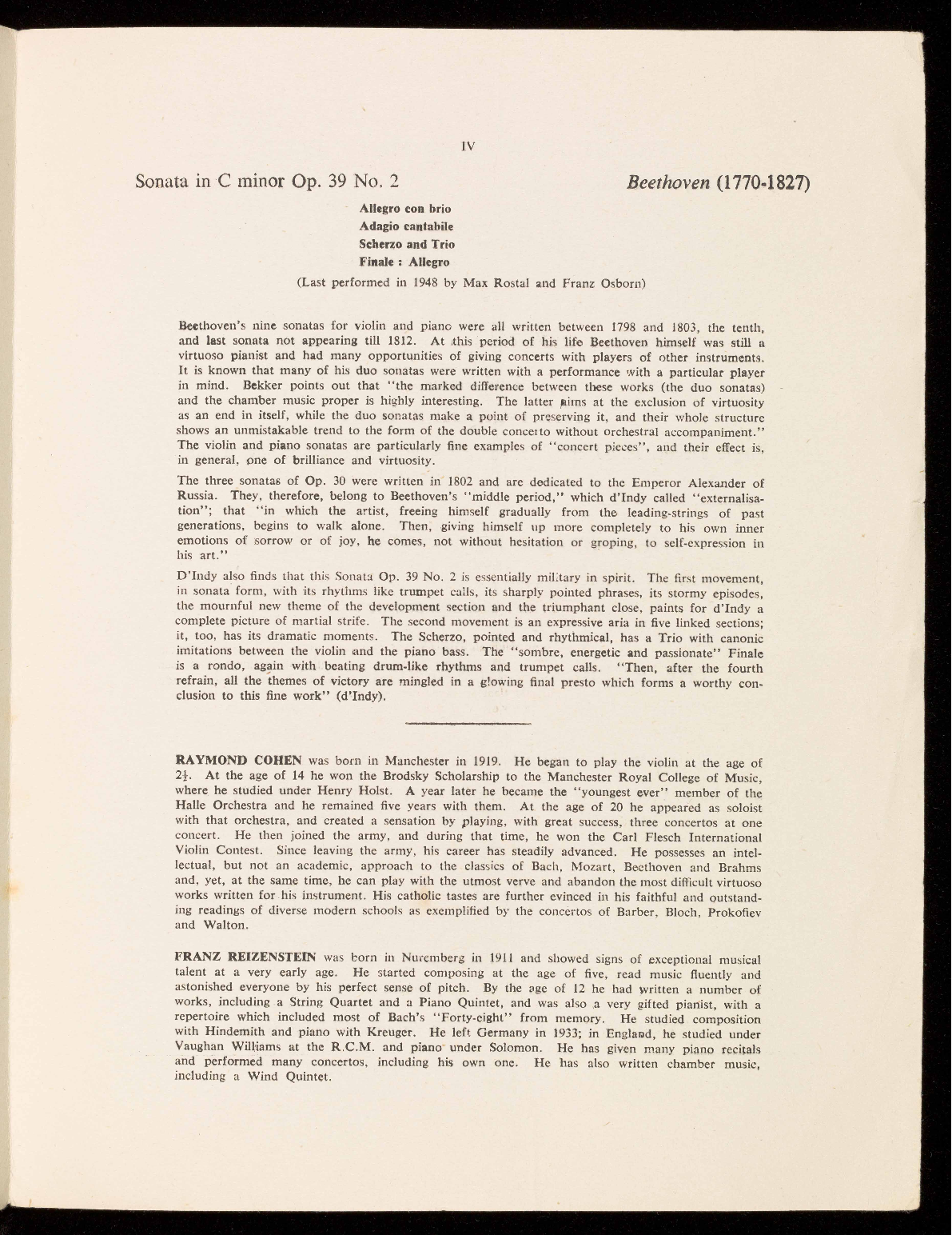 chamber music, which includes a violin and a cello sonata, a piano quintet and a piano trio. His