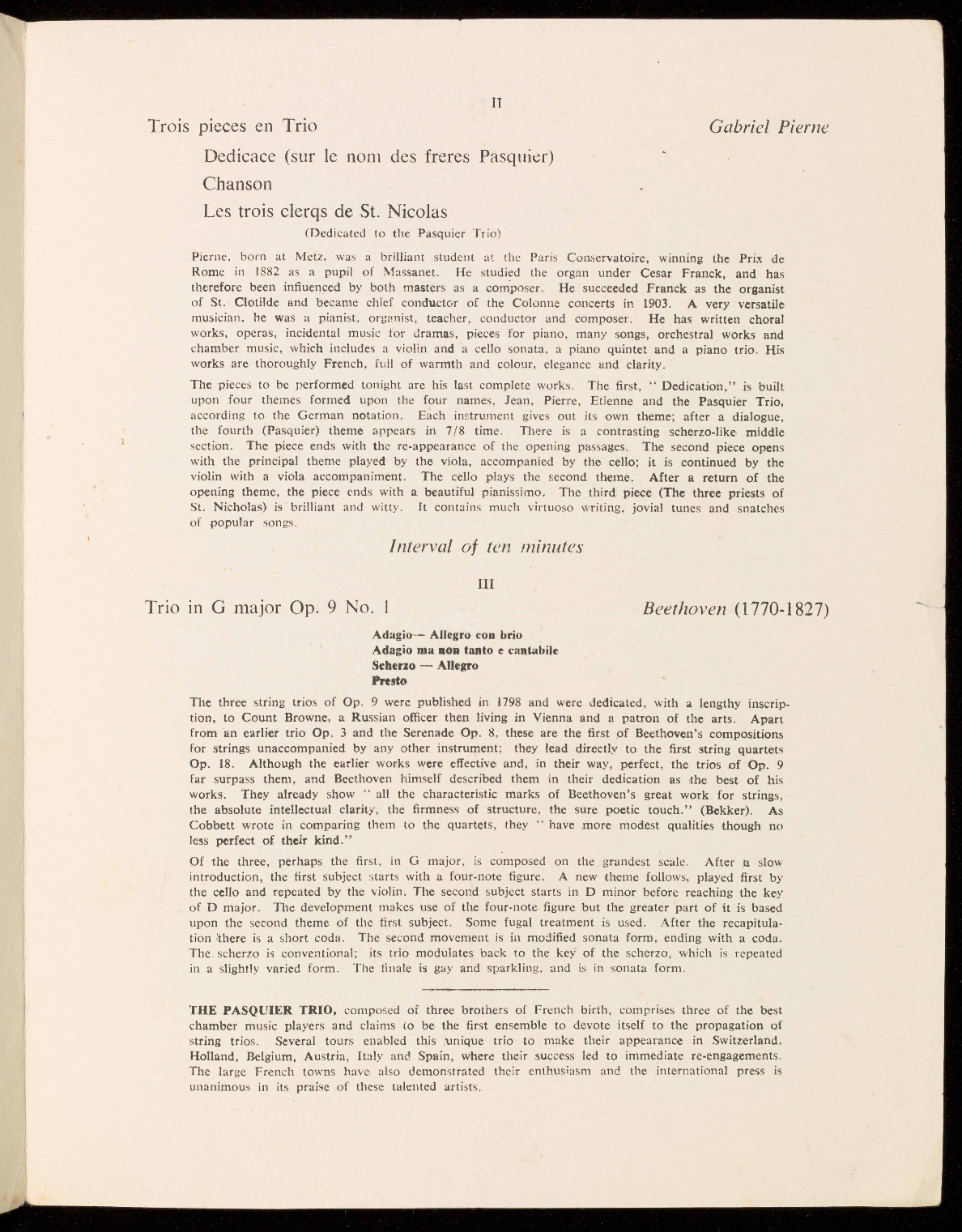 THE PASQUIER TRIO, composed of three brothers of French birth, comprises three of the best