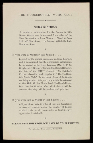 Hon. Treasurer :-K. P. G. GEOGHEGAN, 3 Belgrave Terrace. Tel. Hudd. 6787