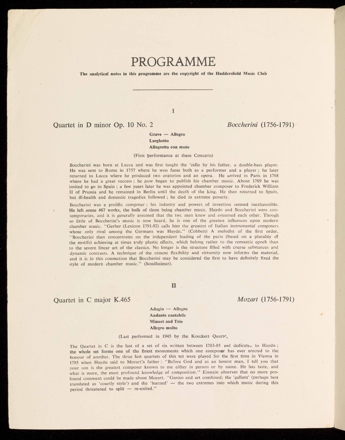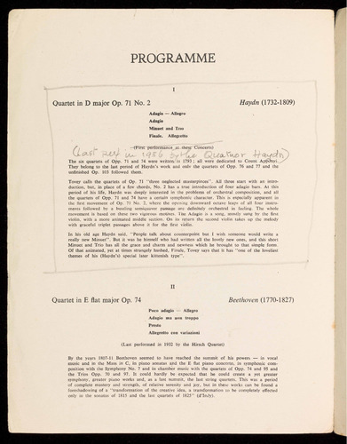 (Last performed in 1932 by the Hirsch Quartet)