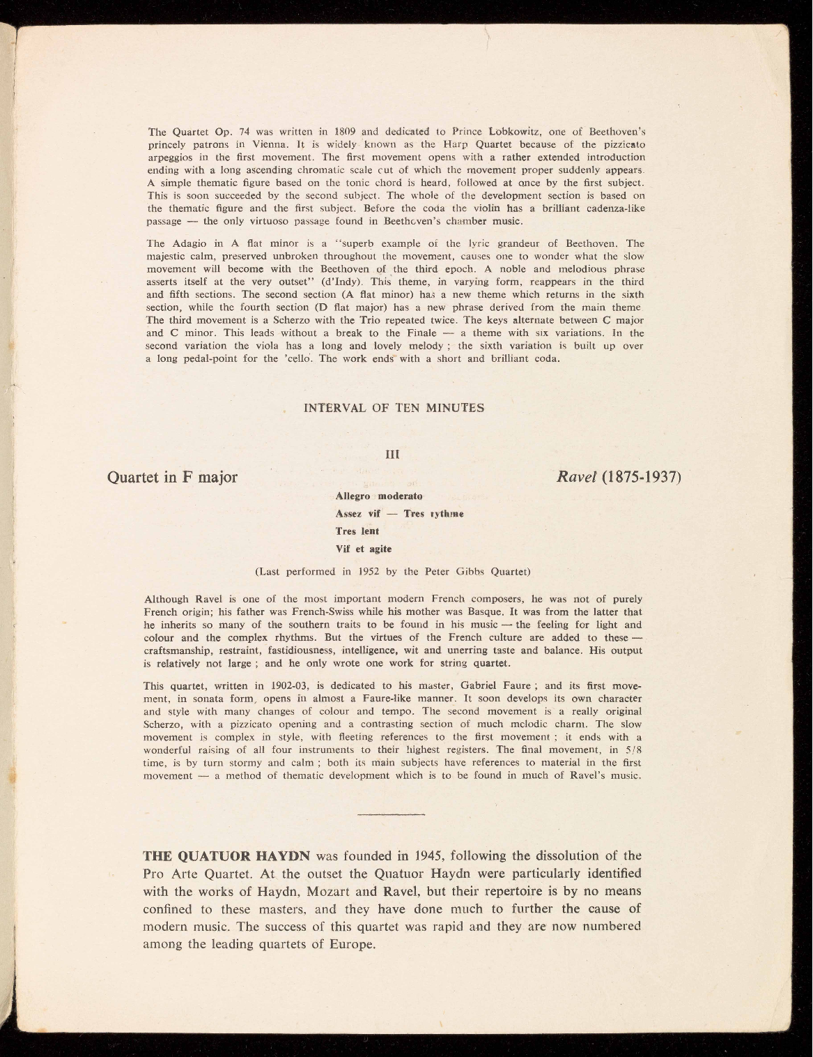 Pro Arte Quartet. At the outset the Quatuor Haydn were particularly identified