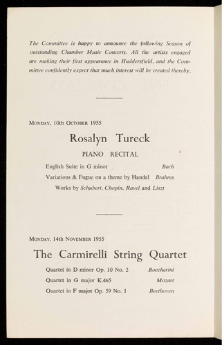 outstanding Chamber Music Concerts. All the artists engaged
