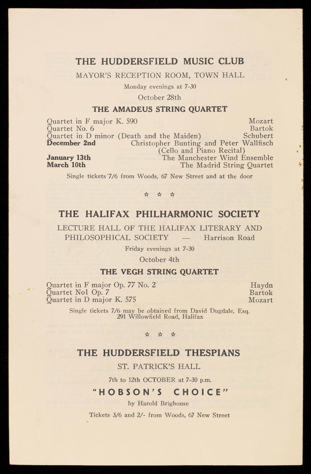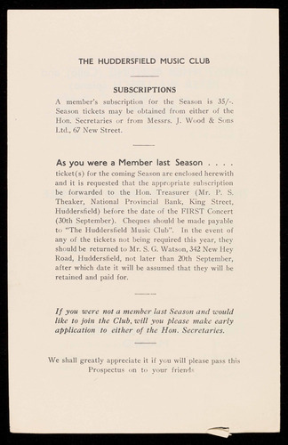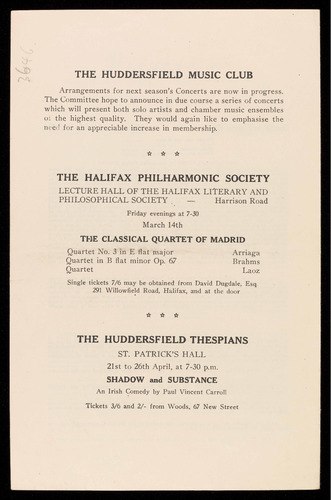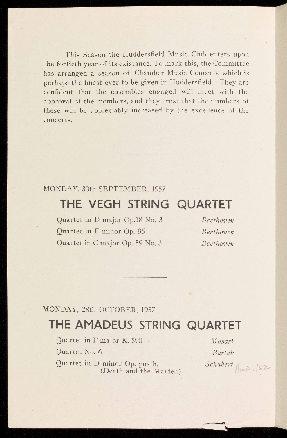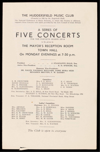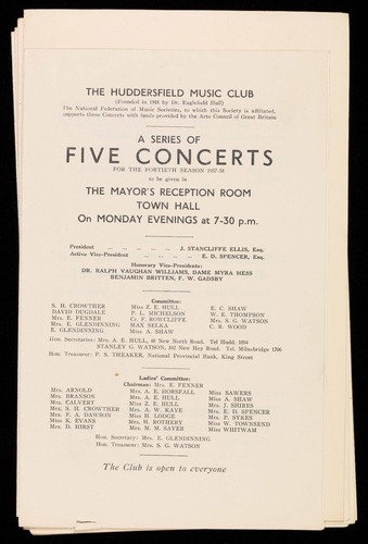 This Season the Huddersfield Music Club enters upon