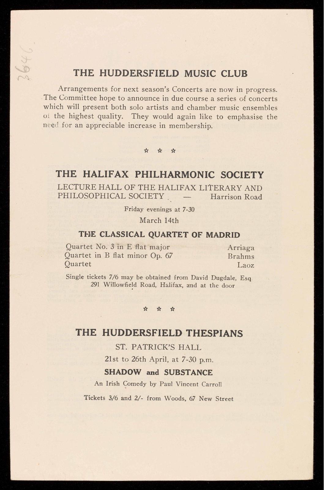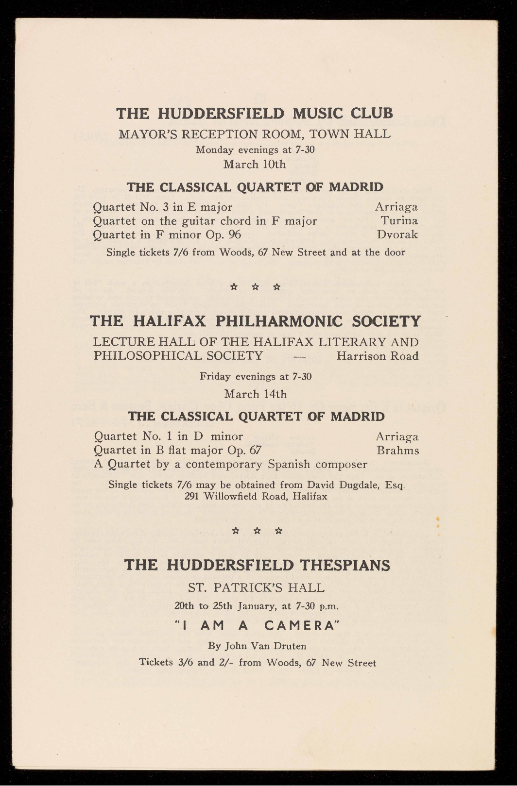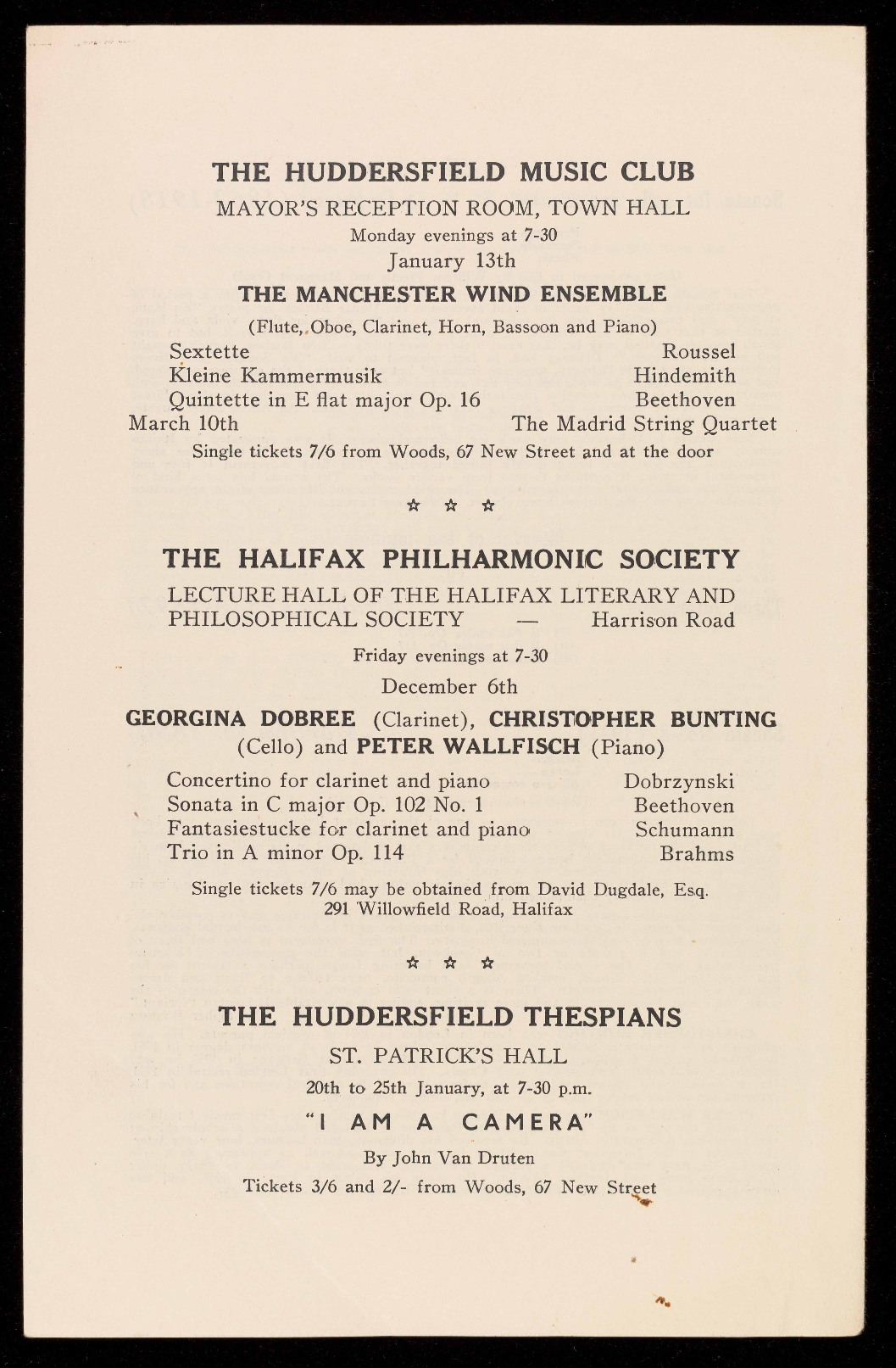 This Season the Huddersfield Music Club enters upon