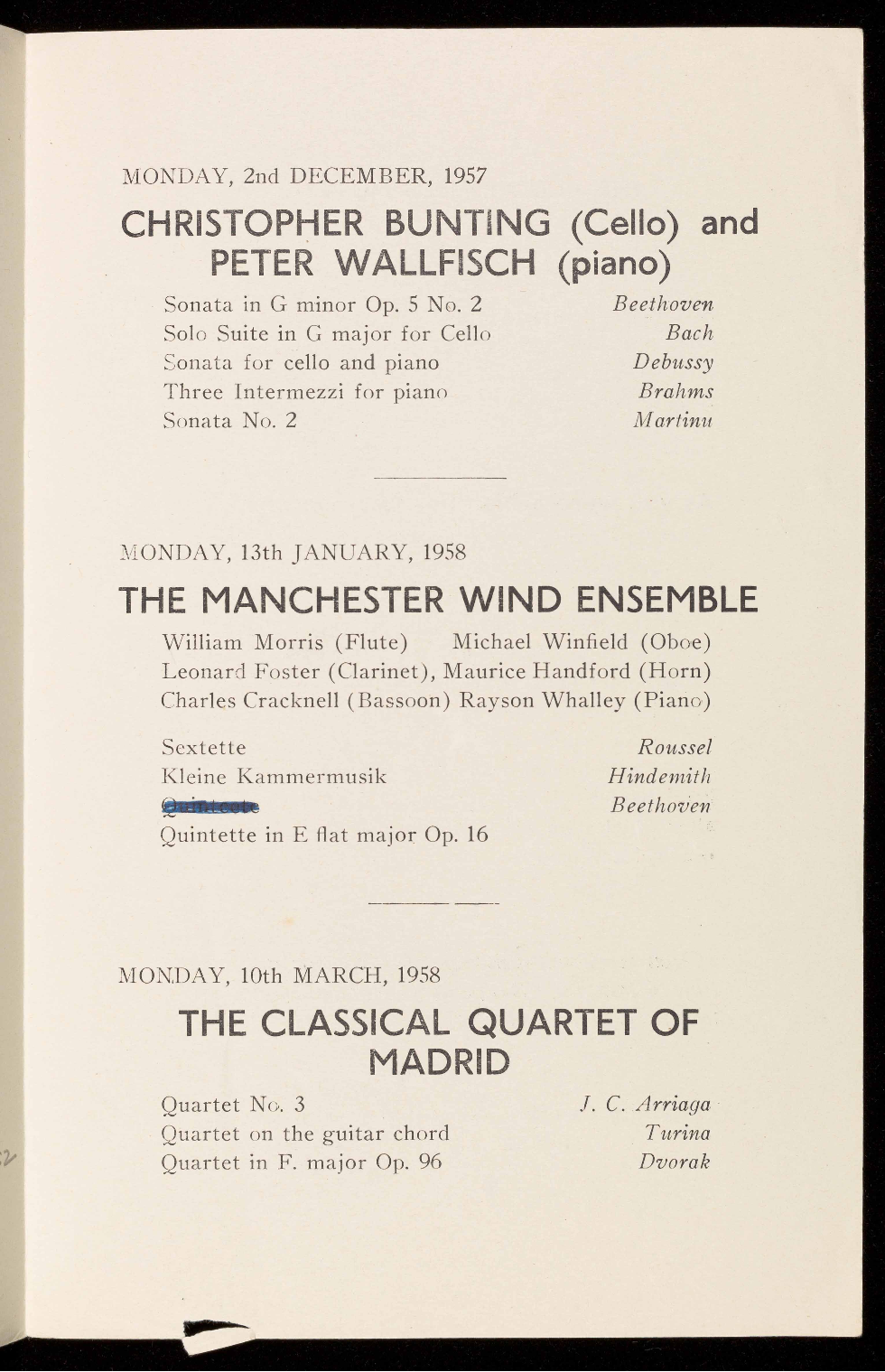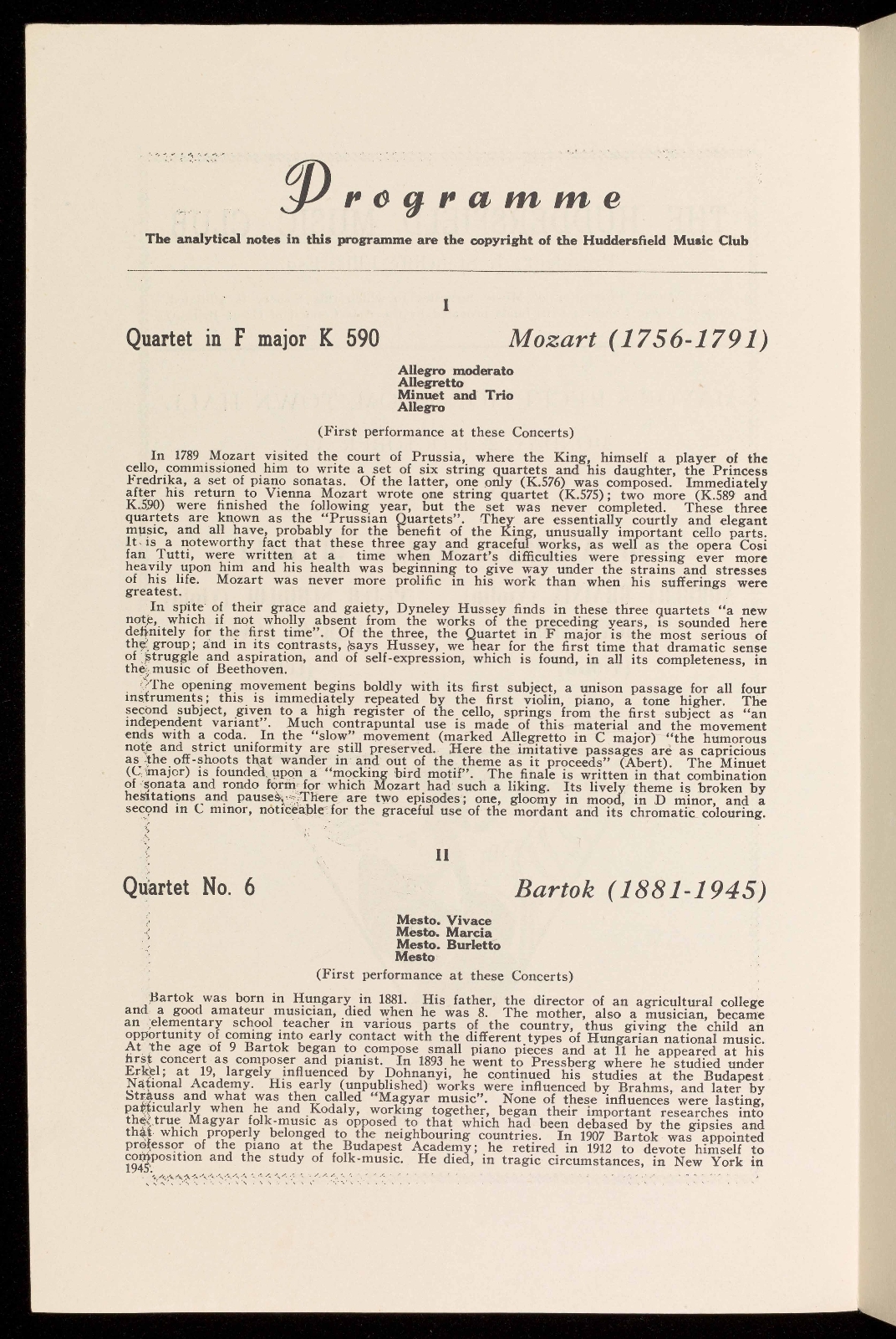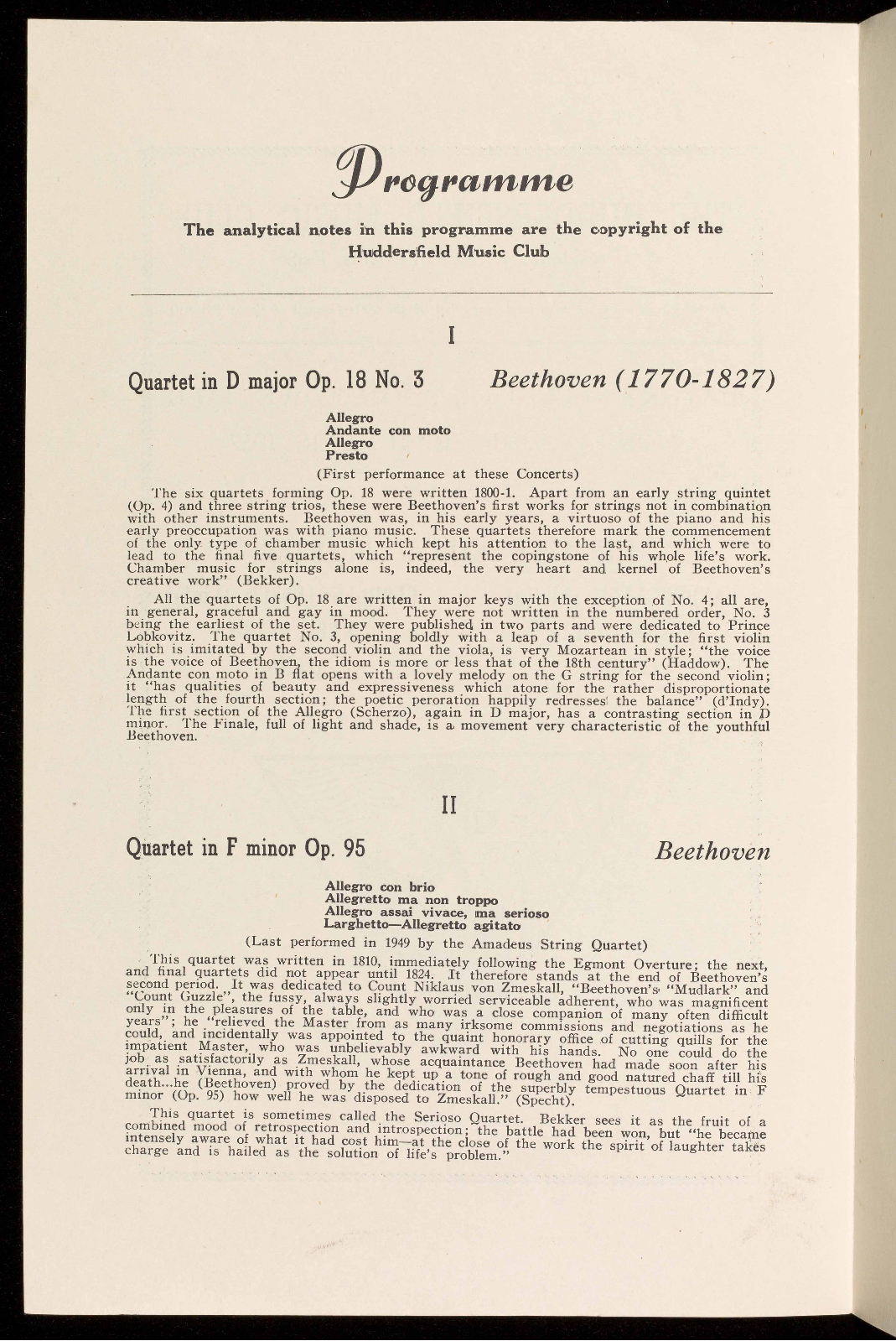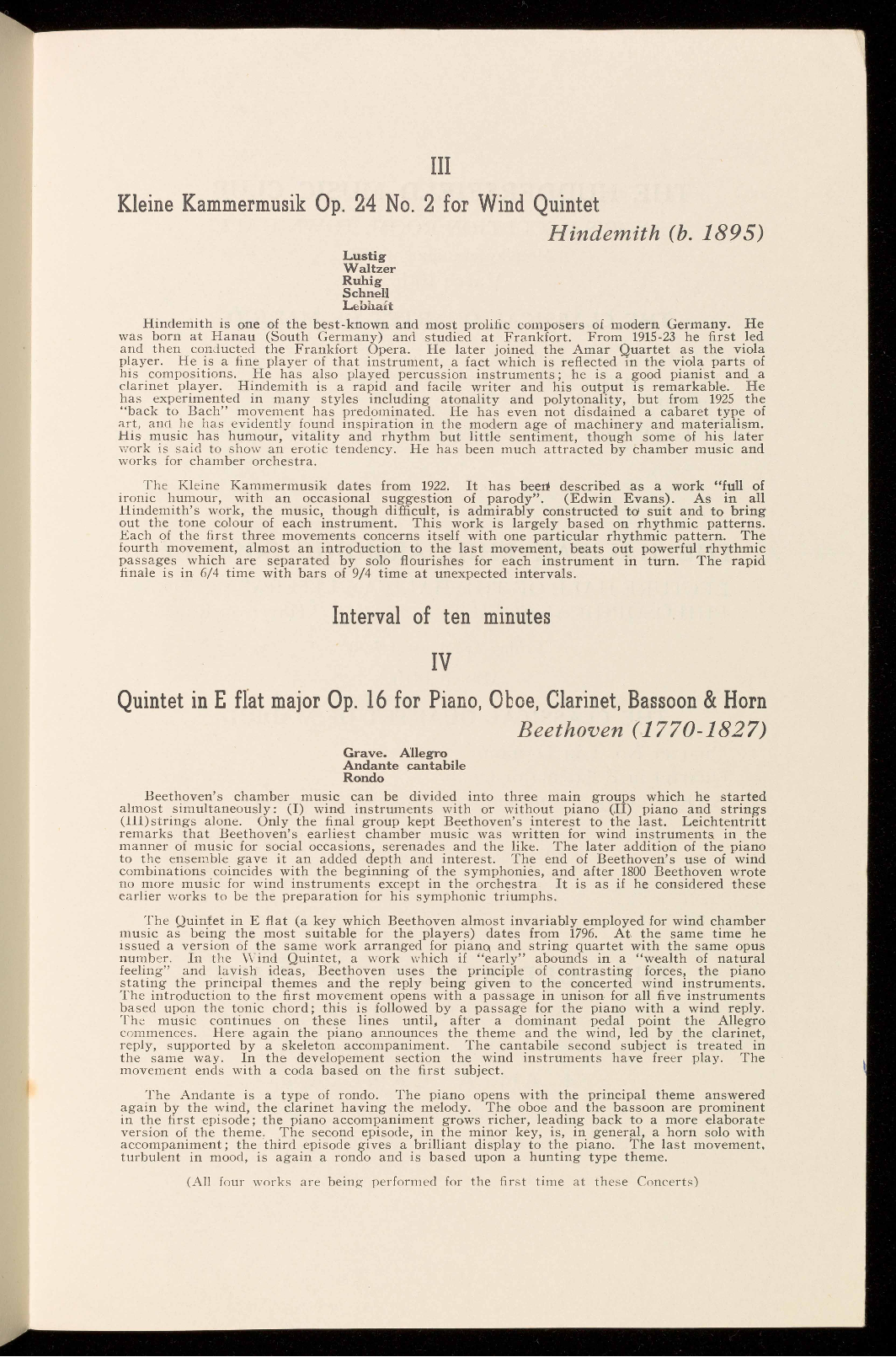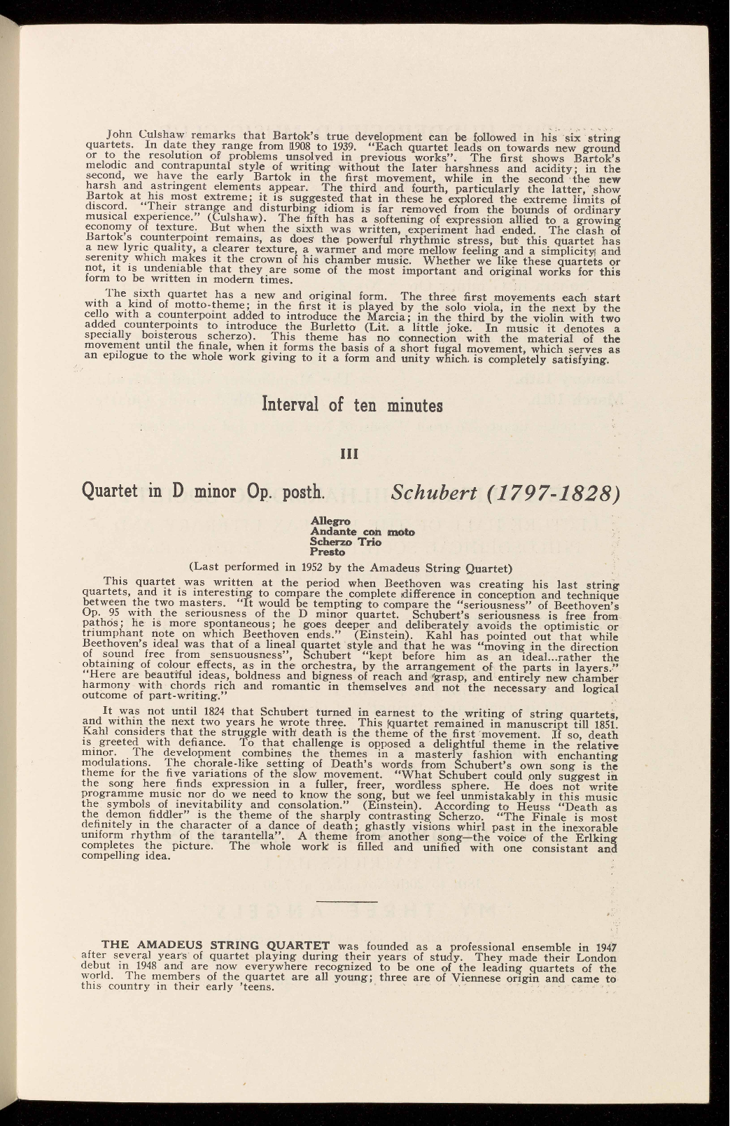 (Last performed in 1944 by the Griller String Quartet)