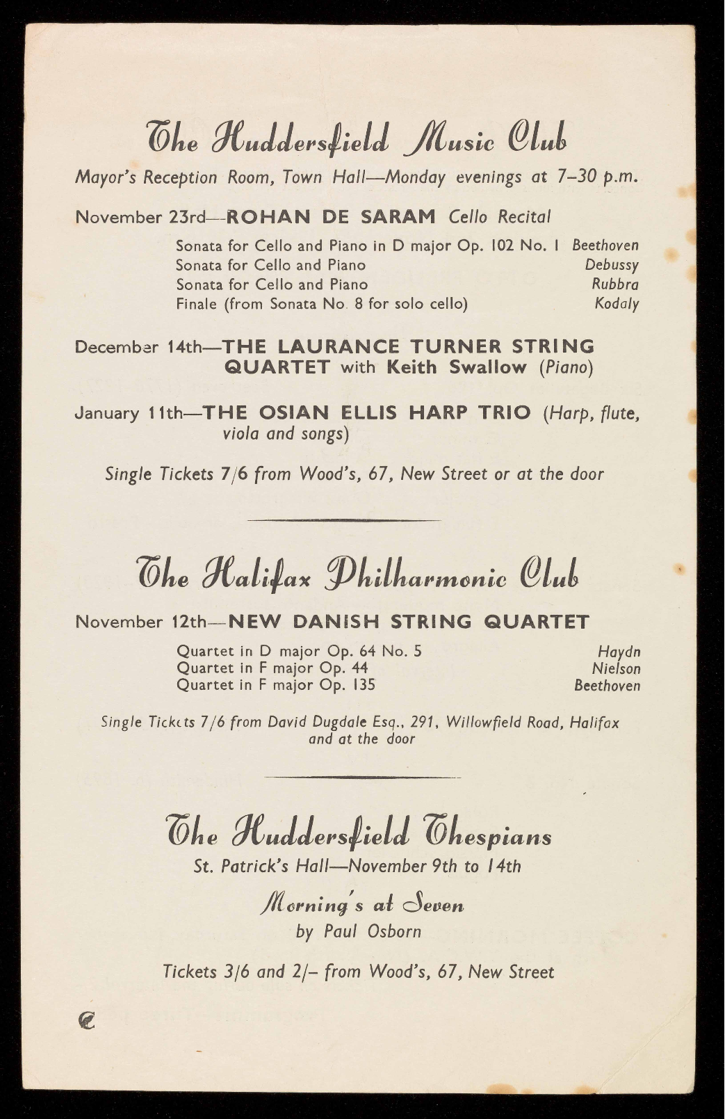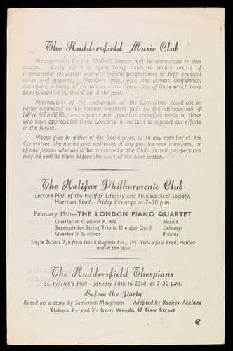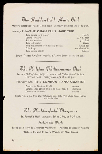 Tickets 3/6 and 2/- from Woods, 67 New Street