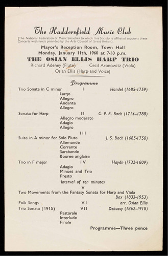 January 11th-THE OSIAN ELLIS HARP TRIO