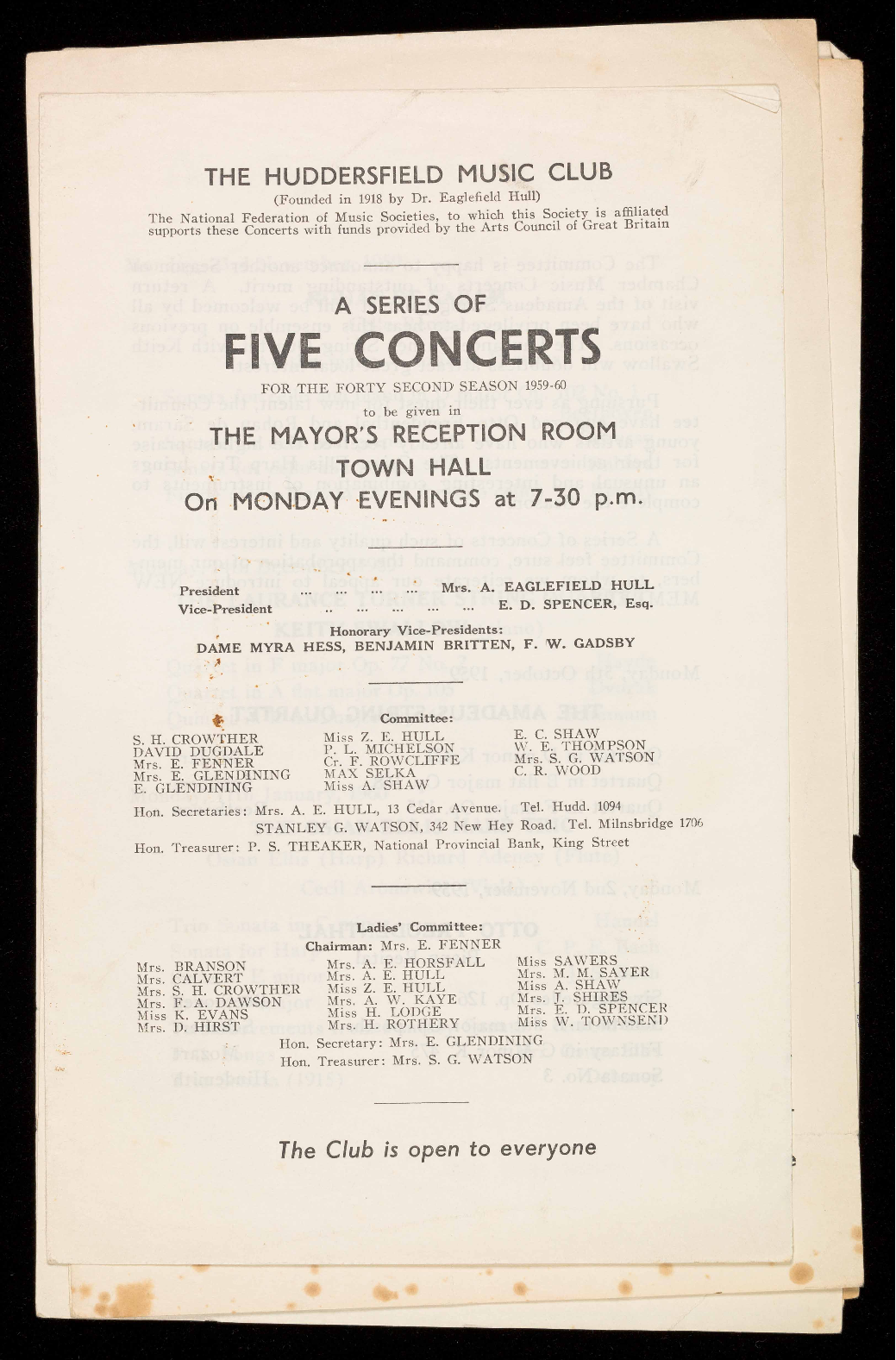 DAME MYRA HESS, BENJAMIN BRITTEN, F. W. GADSBY