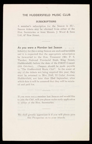 Hon. Treasurer: P. S. THEAKER, National Provincial Bank, King Street