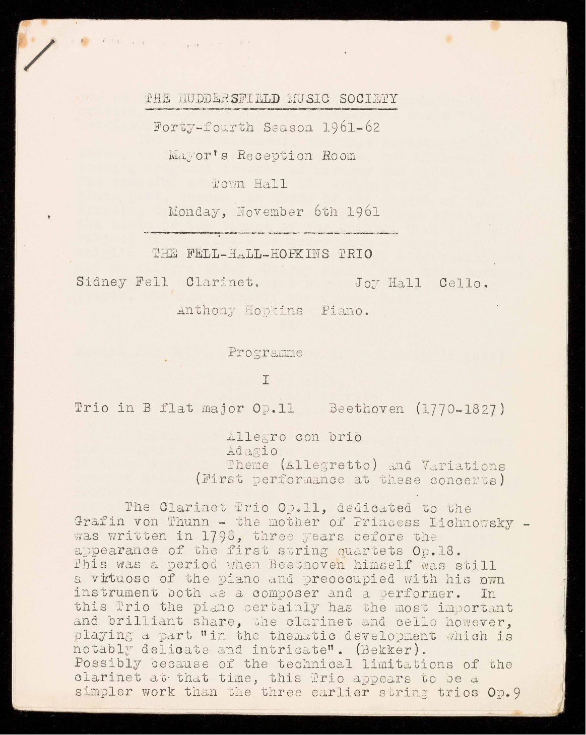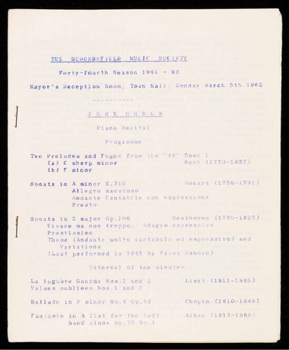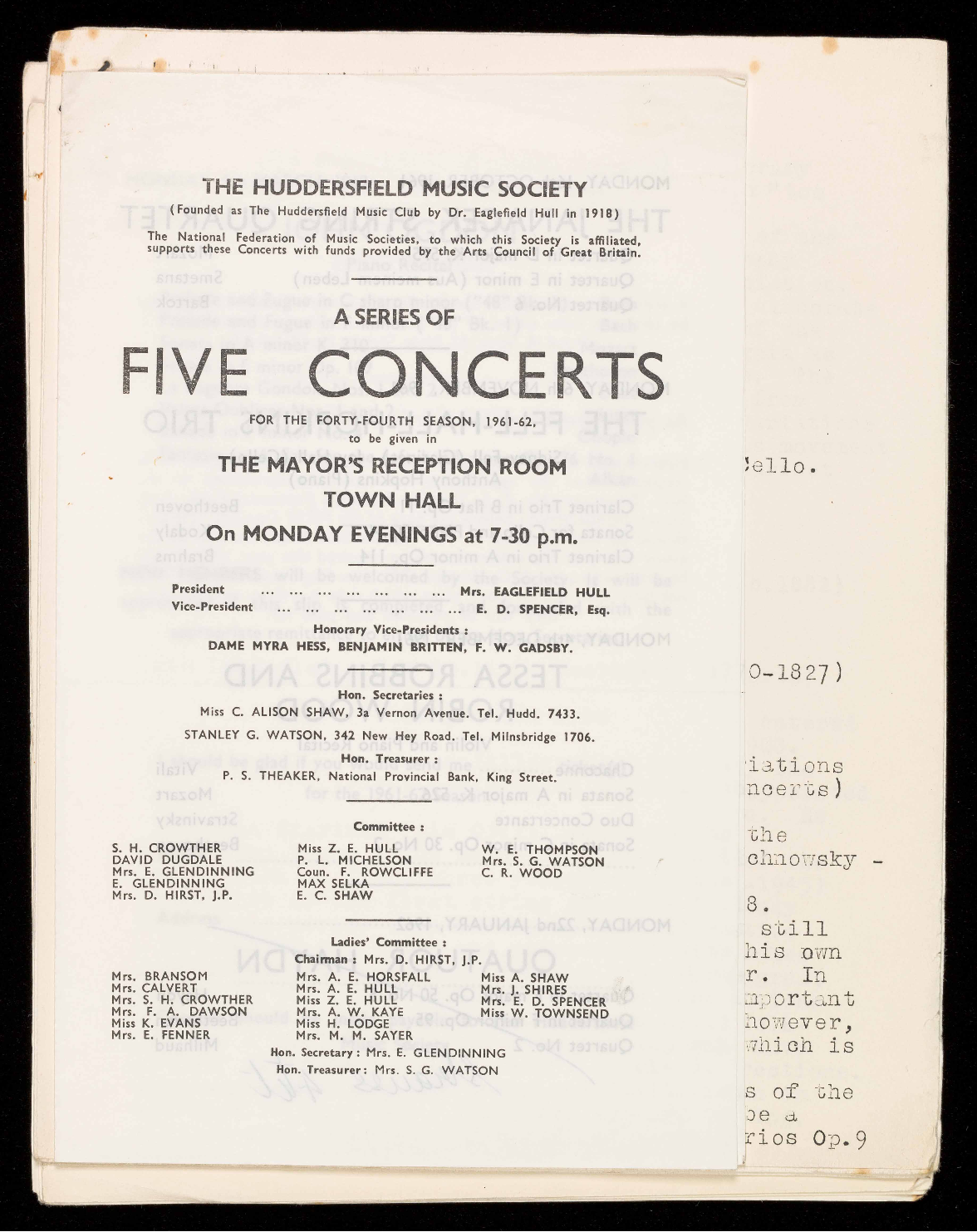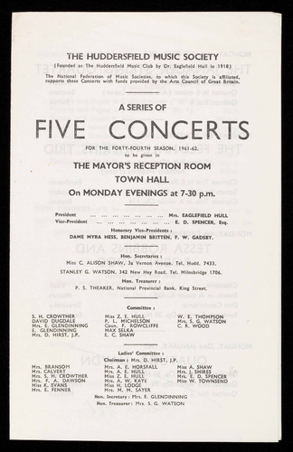 (Founded as The Huddersfield Music Club by Dr. Eaglefield Hull in 1918)