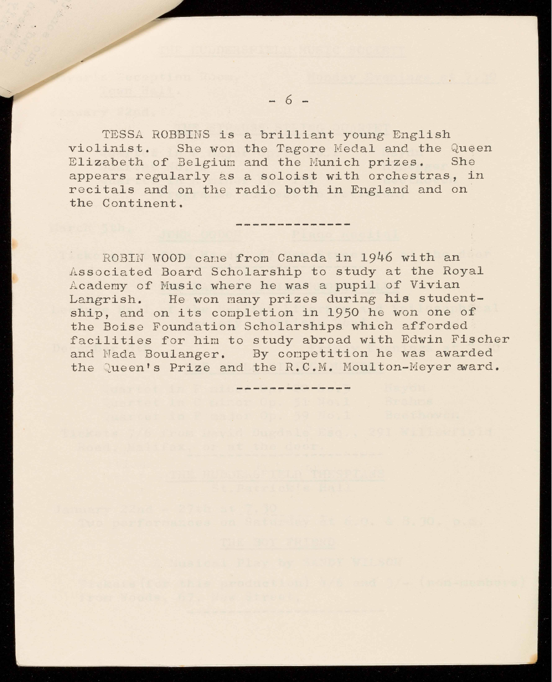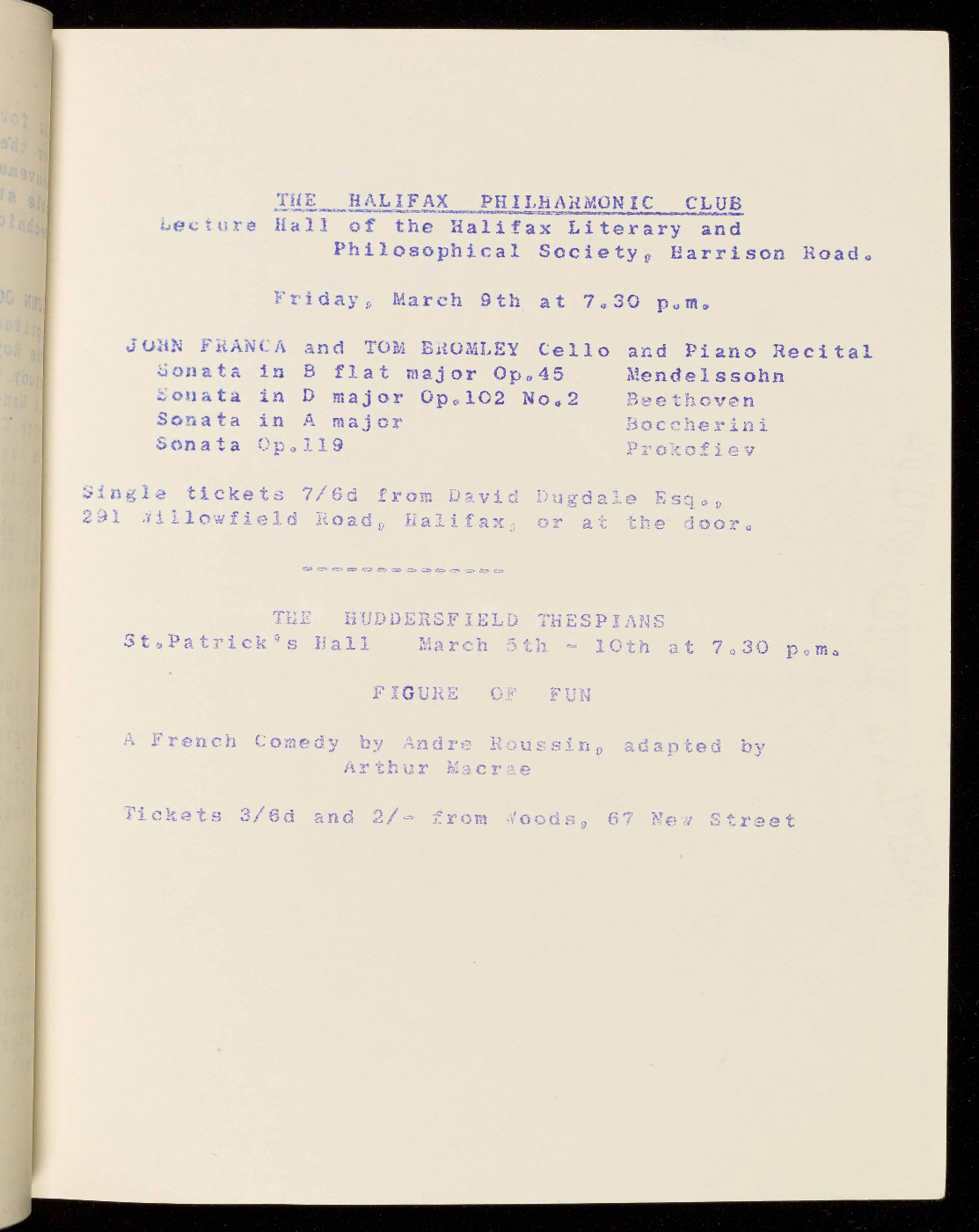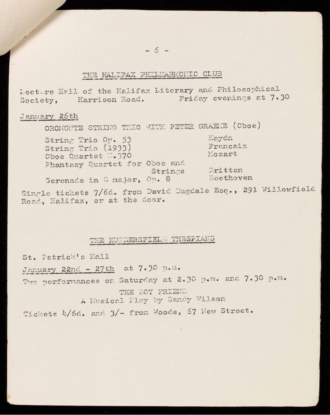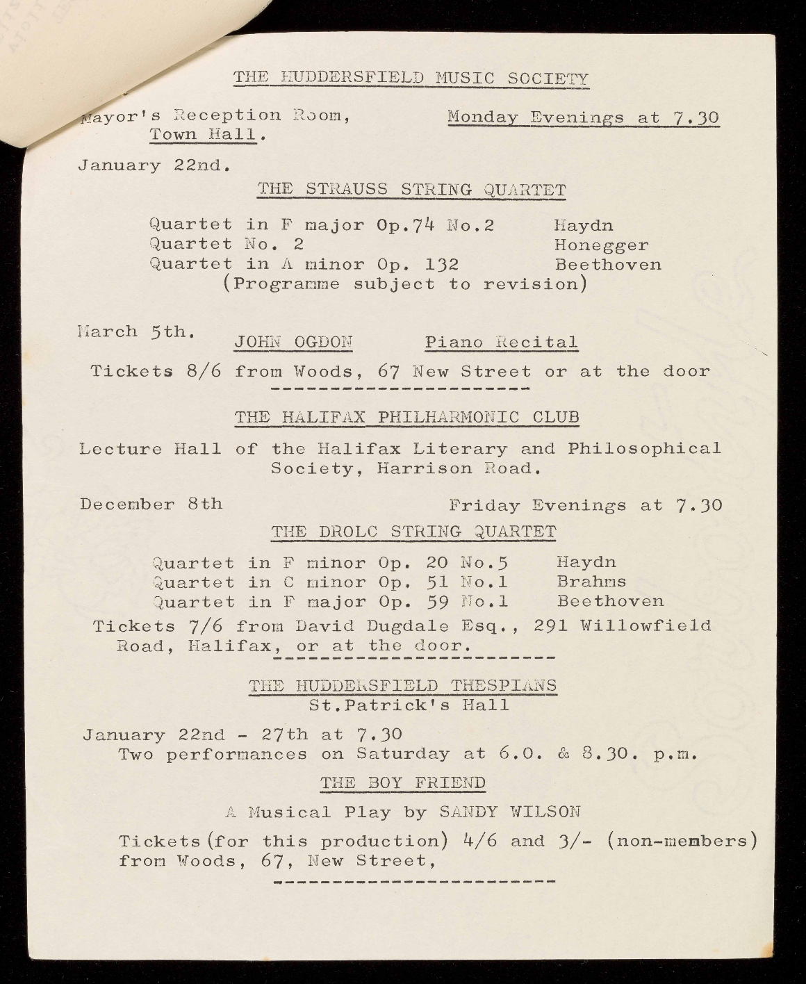 Tickets 3/6d and 2/- from Woods, 67 New Street