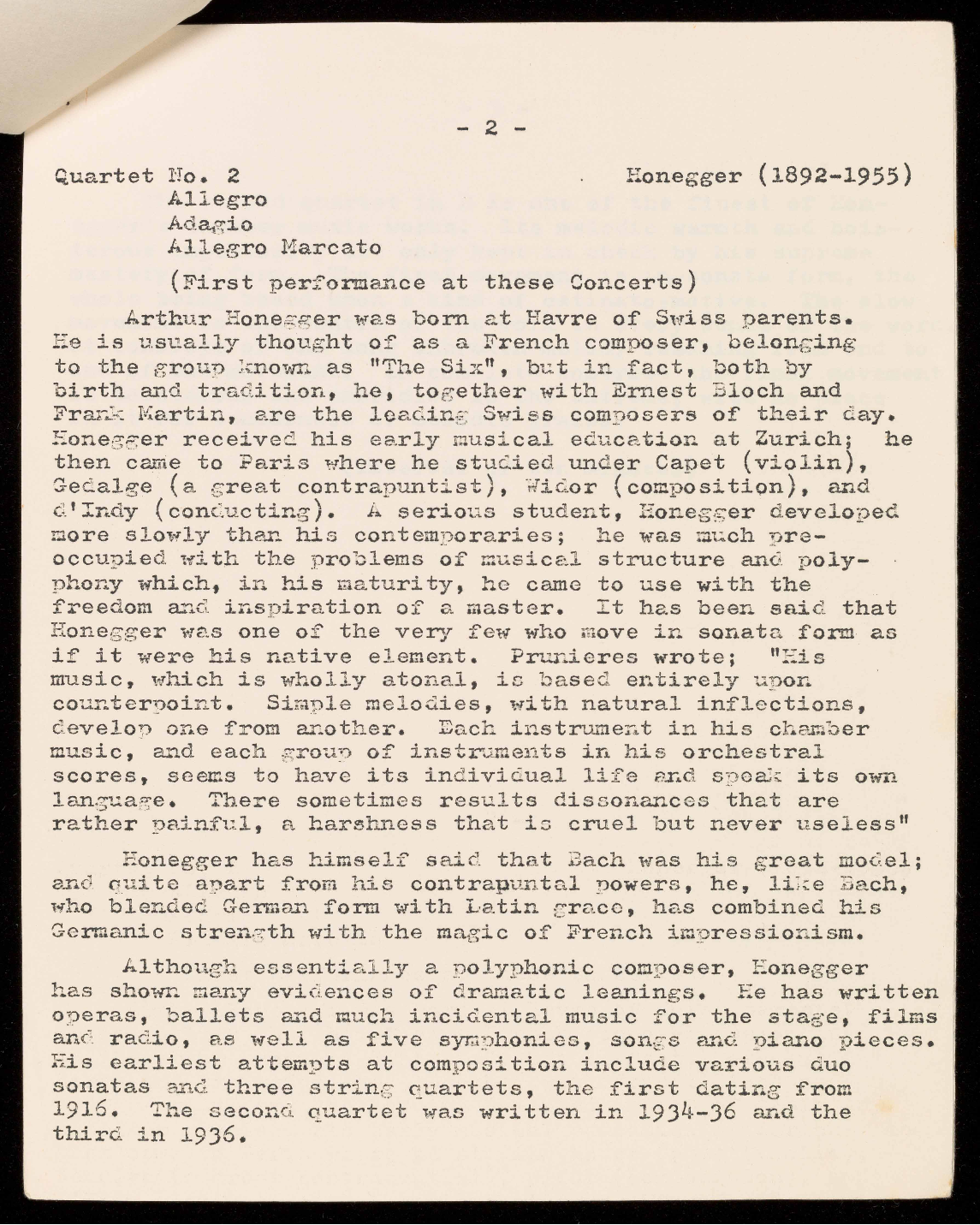 FIVE CONCERTS