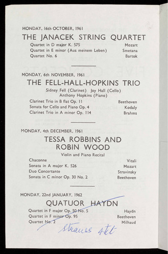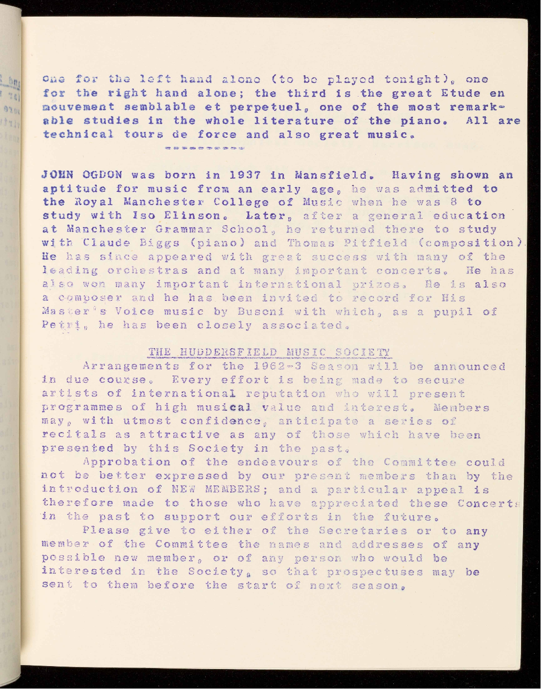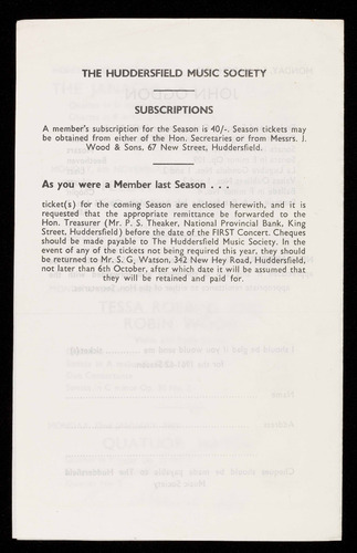 Arrangements for the 1962-3 Season will be announced