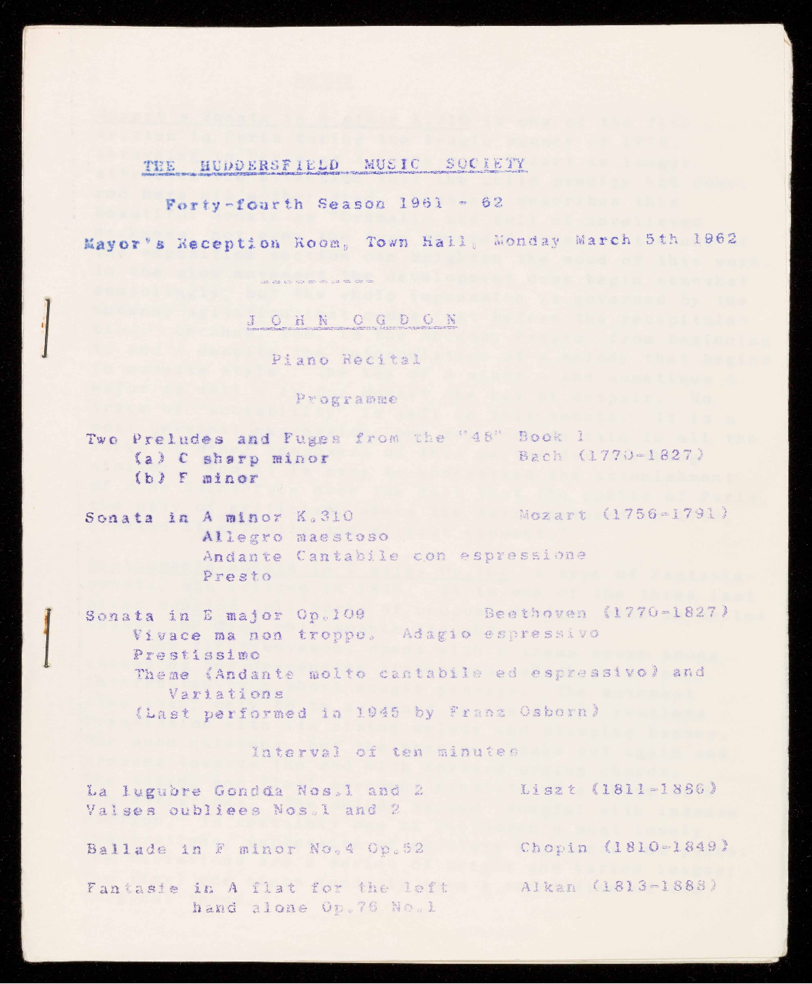 44th Season's programmes 196) - 1962